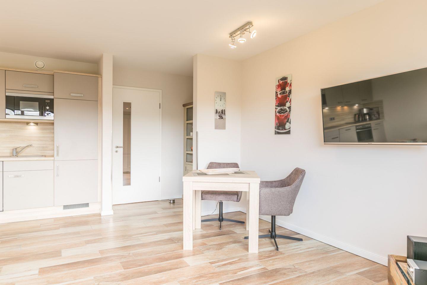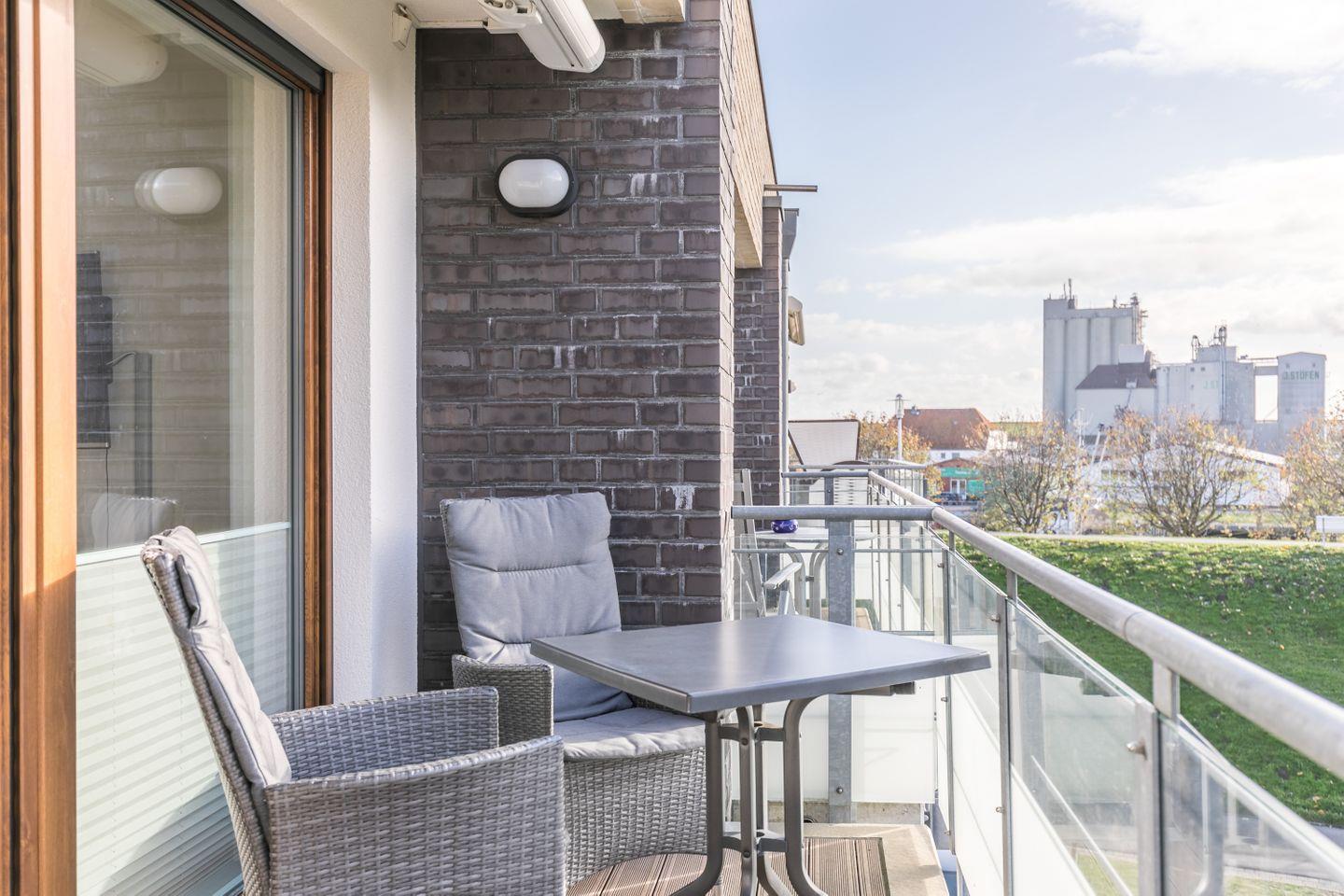 Moderne Ferienwohnung Deichoase 2.3 in Büsum mit Balkon, WLAN, Fahrstuhl und Nähe zu Strand und Hafen.