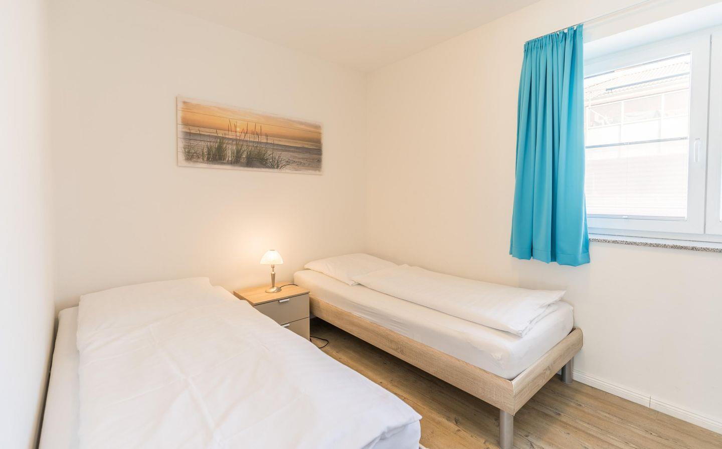 2 Einzelbetten (0,90cm x 200cm x 50cm), Nachttischlampe, beleuchteter Spiegelschrank Verdunkelungsvorhang