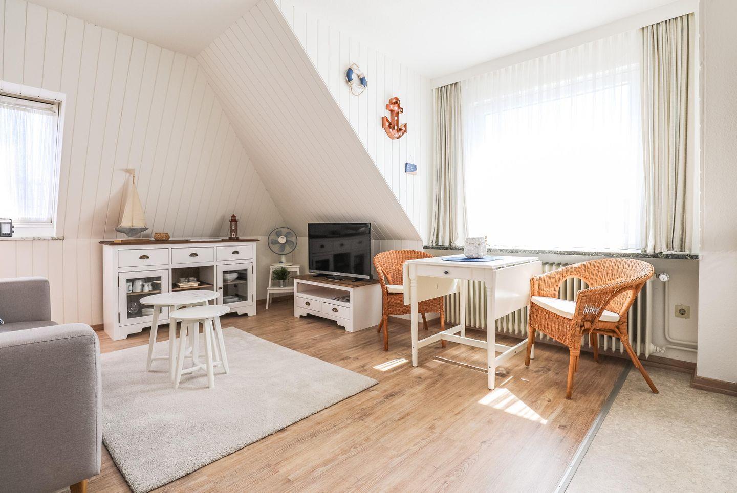 Gemütliches Appartement Annabelle in Büsum, 550m vom Strand, mit WLAN, TV und privatem Parkplatz, ideal für erholsame Tage zu zweit.