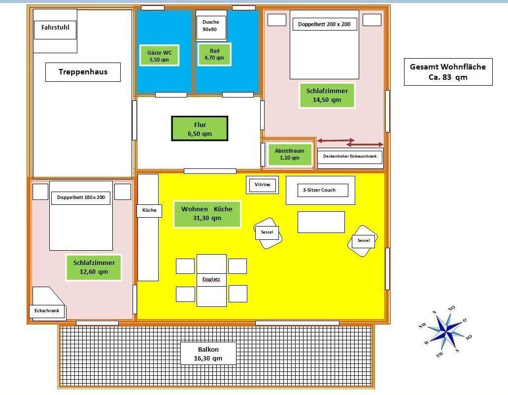 Das Haus mit Fahrstuhl und die Wohnung sind barrierearm und damit rollstuhlfreundlich. Elektromobile, sog. Scooter, sind im Haus und im Fahrstuhl jedoch nicht zugelassen.