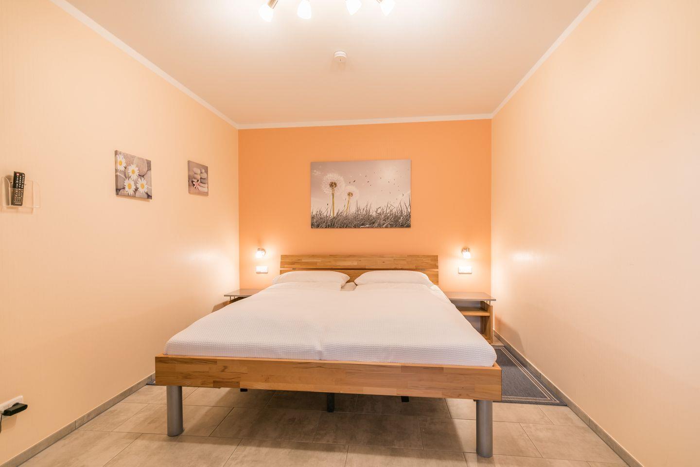 Doppelbett (1,80x2,00m) verstellbare Lattenroste Komforthöhe, Kleiderschrank, Nachttische, Sessel, Herrendiener, Außenrolladen, TV, Zugang zum Balkon