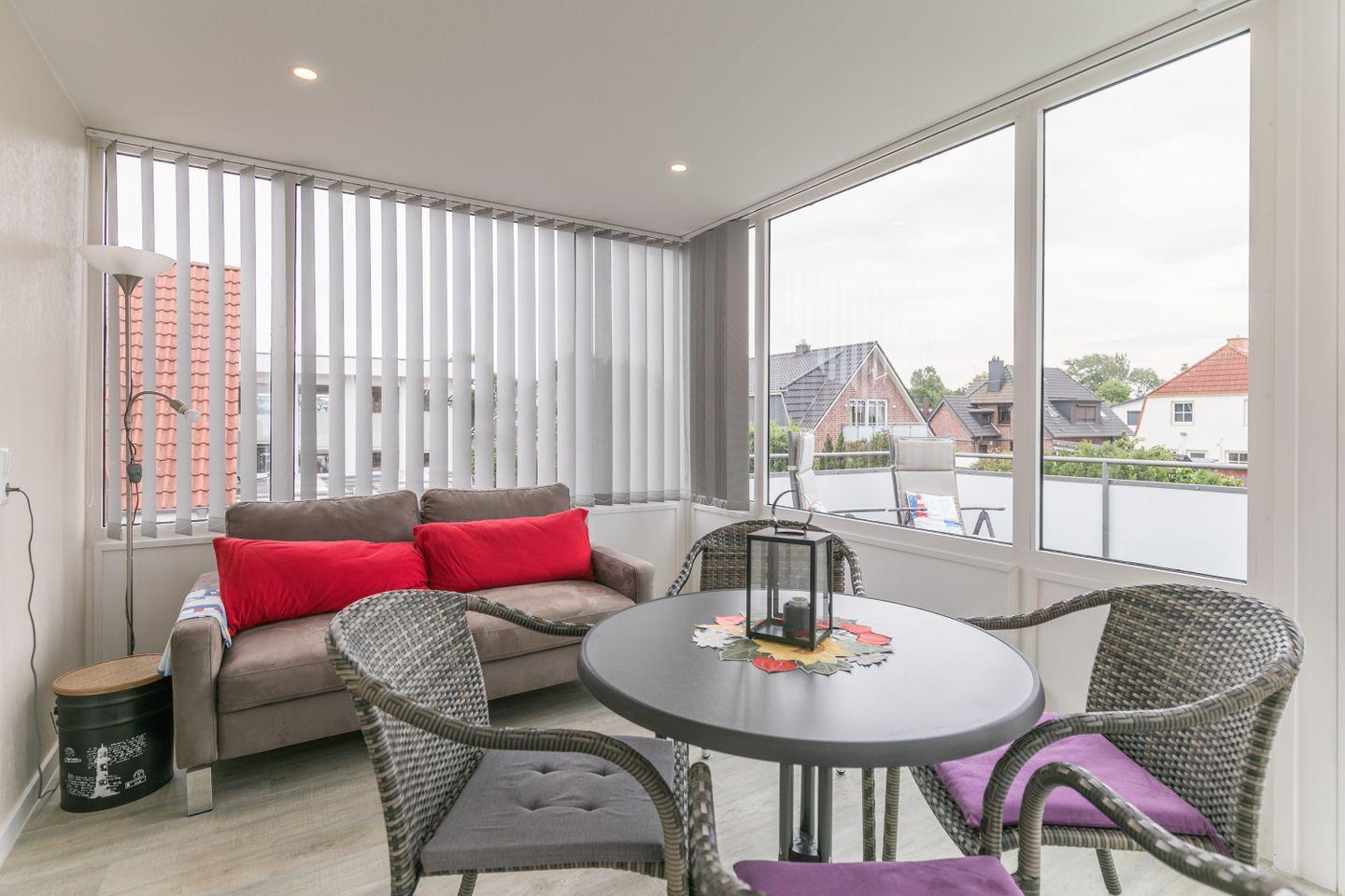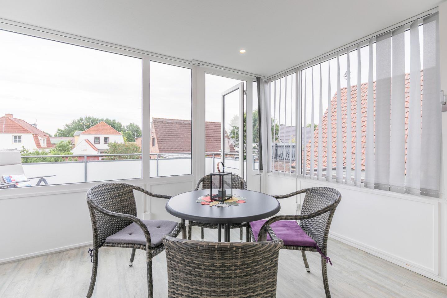 Sommerzimmer, OG, nur im Sommer nutzbar: Rundum verglast, Balkonmöbel und Zugang zum Balkon