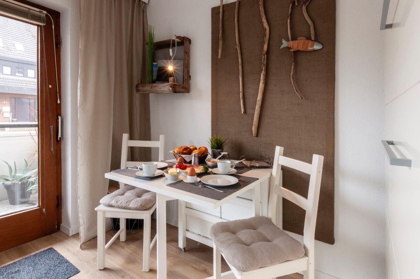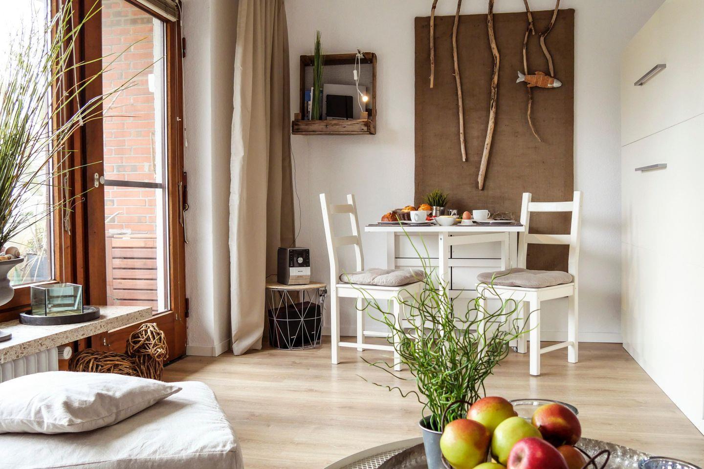 Gemütliche Ferienwohnung mit sonnigem Balkon und Strandkorb nahe der Perlebucht in Büsum.
