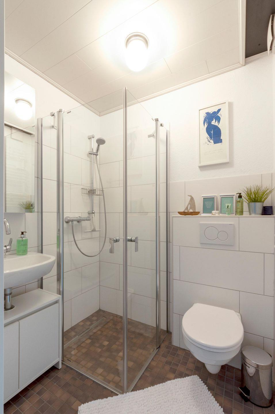 Auch das innenliegende Bad mit bodentiefer Dusche ist neuwertig.
