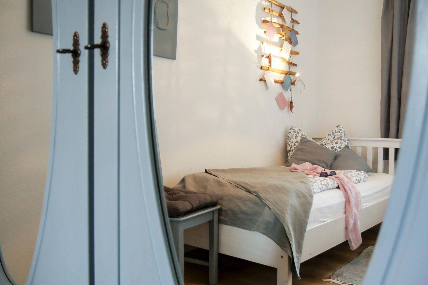 Im gemütlichen Schlafzimmer stehen 2 Einzelbetten und ein großer Schrank mit viel Stauraum zur Verfügung. Die Betten sind bei Ihrer Anreise - ohne Aufpreis - bereits bezogen!