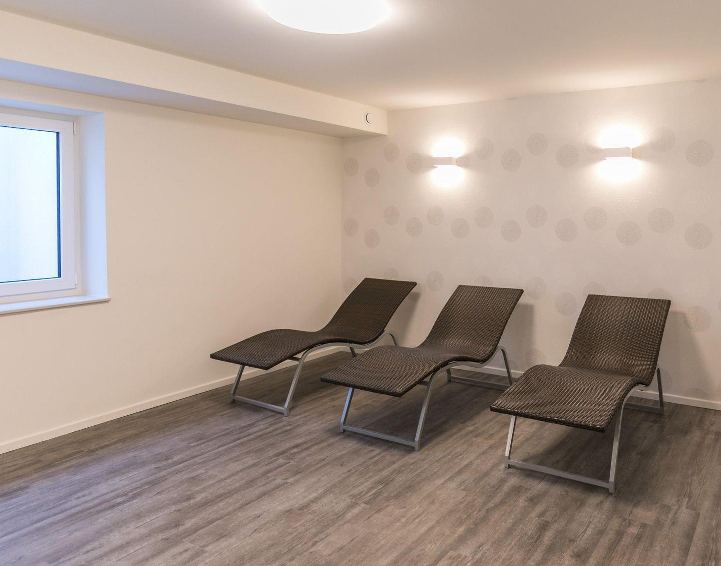 Sportsgeister und Saunagänger finden im Keller des Hauses genau das Richtige: Den Sport- und Wellnessbereich mit angrenzendem Ruheraum. Selbstverständlich kostenfrei für Sie nutzbar!