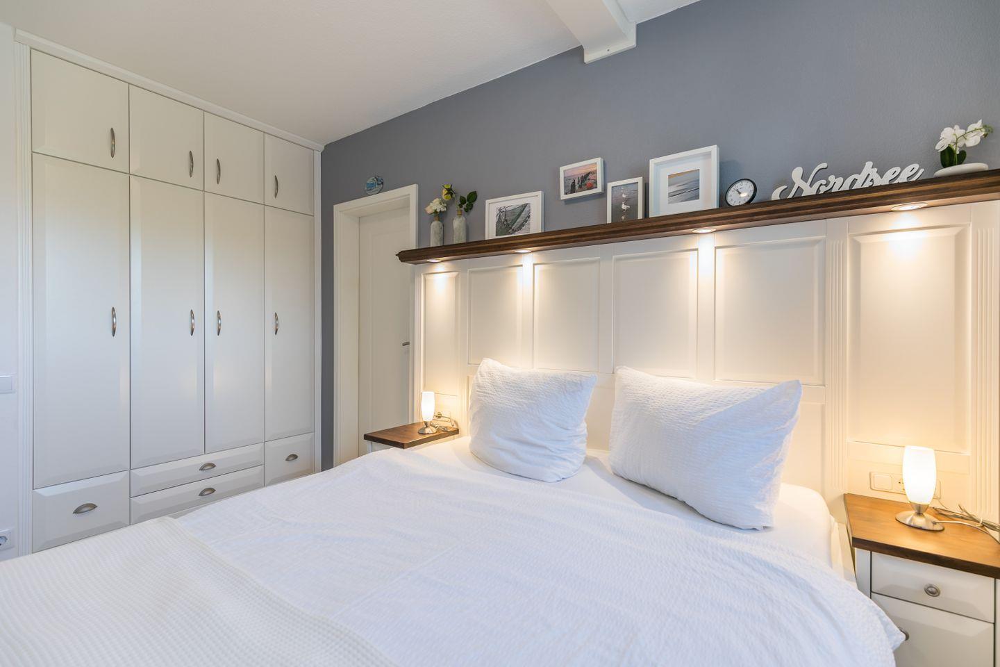 Durchgang zu Schlafzimmer 2, Doppelbett, Kleiderschrank, Nachttisch, Leselampen, Verdunkelungsmöglichkeit, Außenjalousie