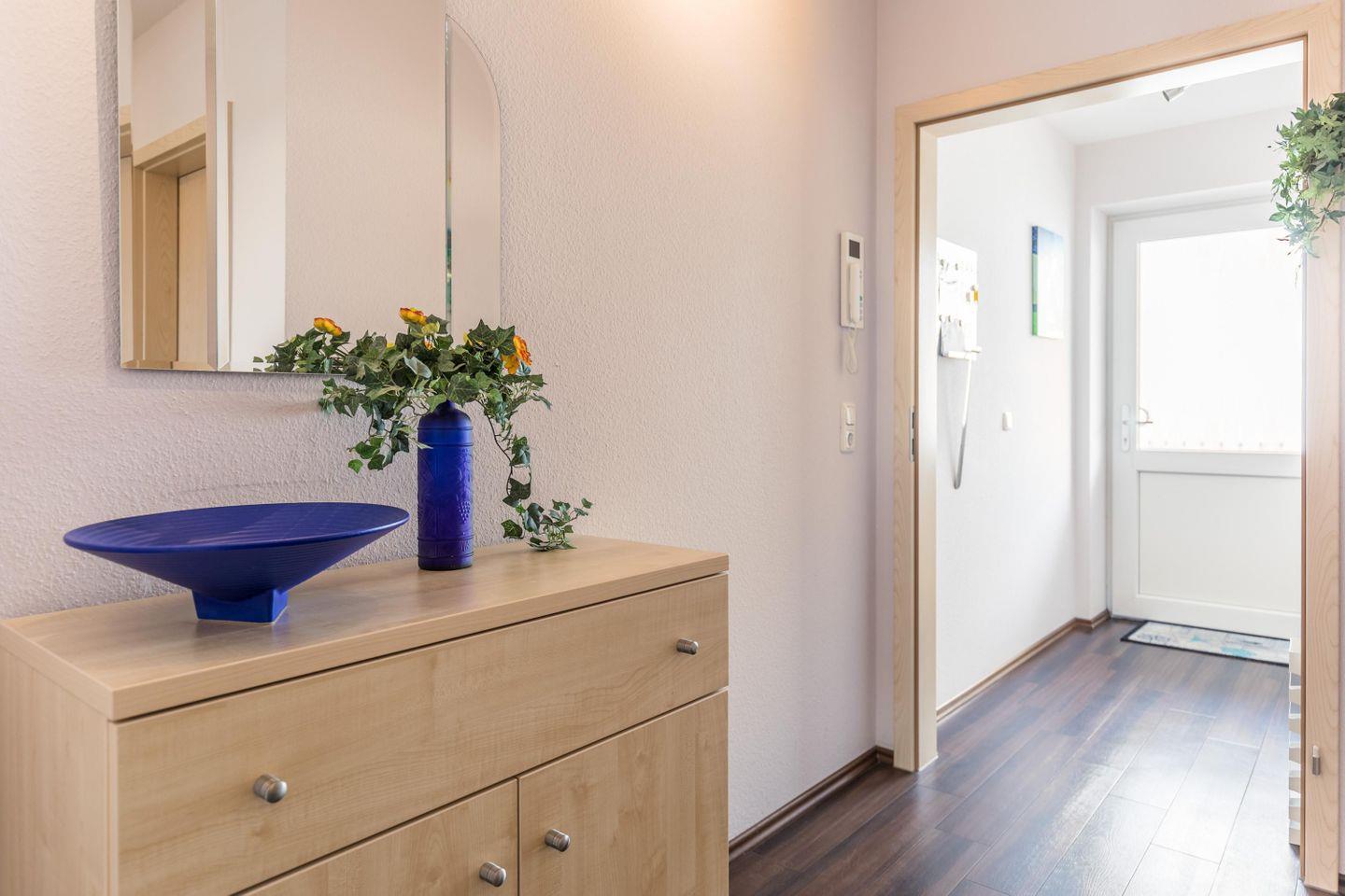 WLAN (Hotspot), Tiefgaragen-Stellplatz (reserviert), Aufzug, abschließbarer Kellerabstellraum, Fahrradabstellplatz in der abgeschlossenen TG, kameraunterstützte Gegensprechanlage, Wäscheständer, Verbandskasten, Rauchmelder, Bügelbrett & Bügeleisen, Münz-Waschmaschine/-Trockner im Haus, Wäsche optional buchbar, Nichtraucher