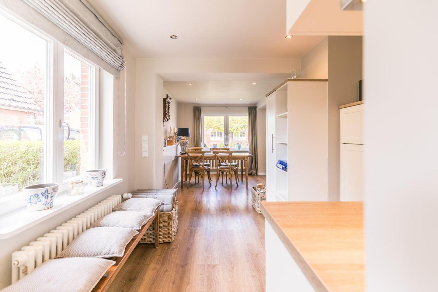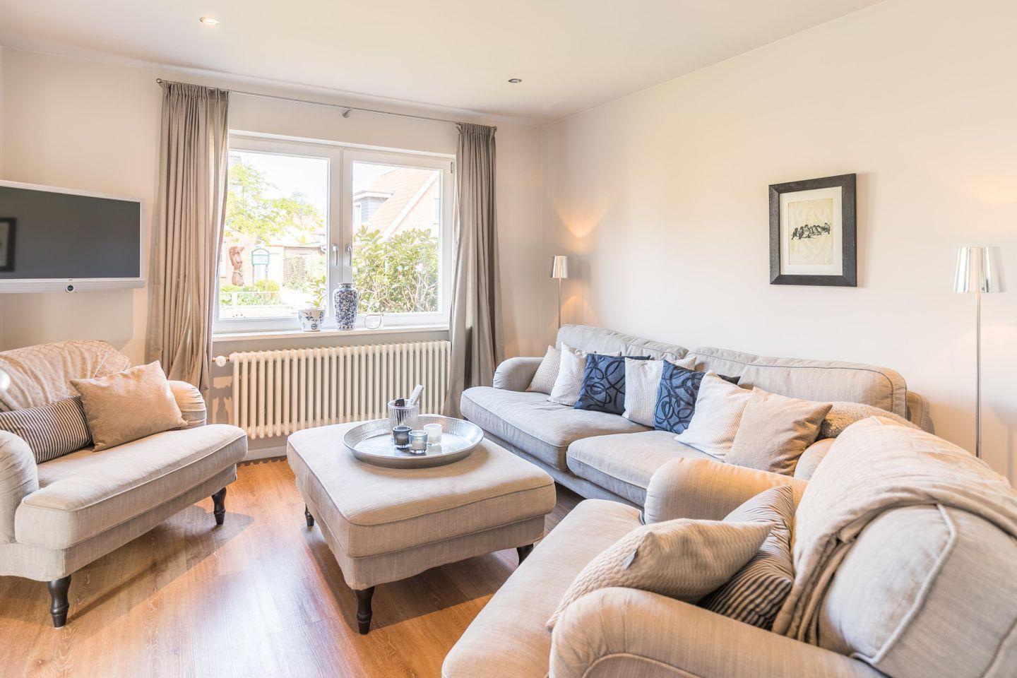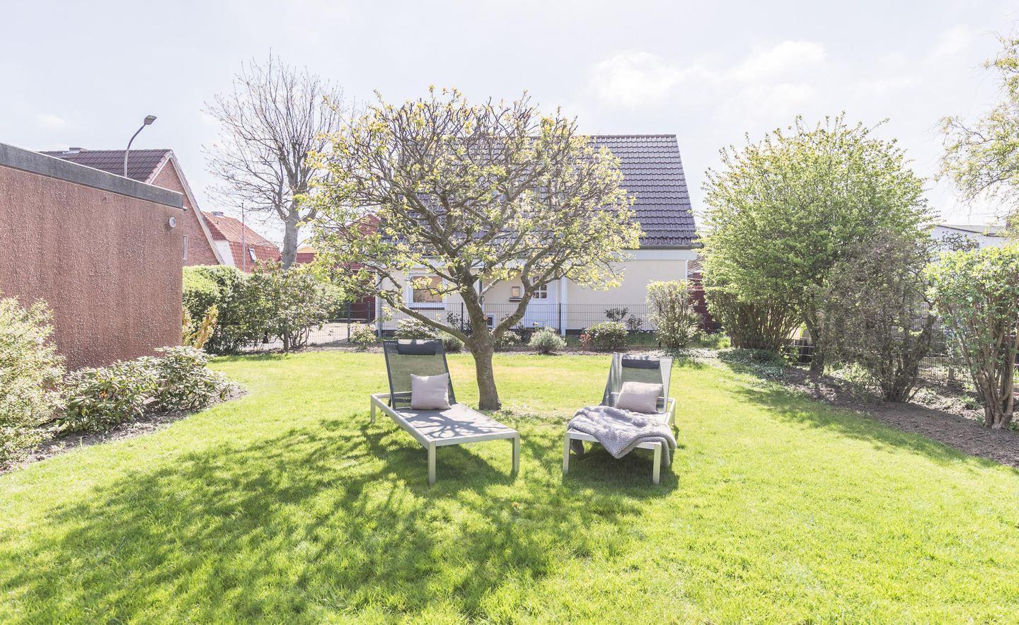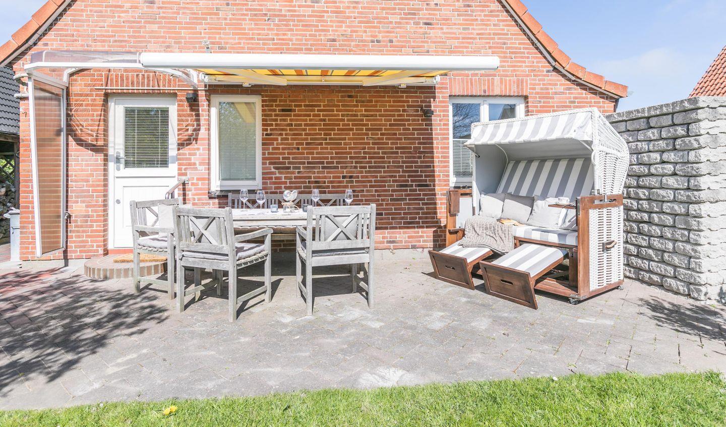 Egal, ob Sie als Paar, Familie oder Gruppe von Freunden reisen – hier finden Sie den perfekten Ort für Ihre unvergesslichen Urlaubsmomente. Der helle Wohnbereich mit Kaminofen öffnet sich zur Terrasse in den sonnigen Garten. Hier warten Strandkorb, Liegen und eine elektrische Markise für entspannte Stunden an der Nordseeluft. Die offene Küche ist mit allem ausgestattet, was das Herz begehrt, und macht es Ihnen leicht, sich selbst zu versorgen – egal, ob Sie nur ein schnelles Frühstück oder einen gemütlichen Kochabend verbringen möchten.