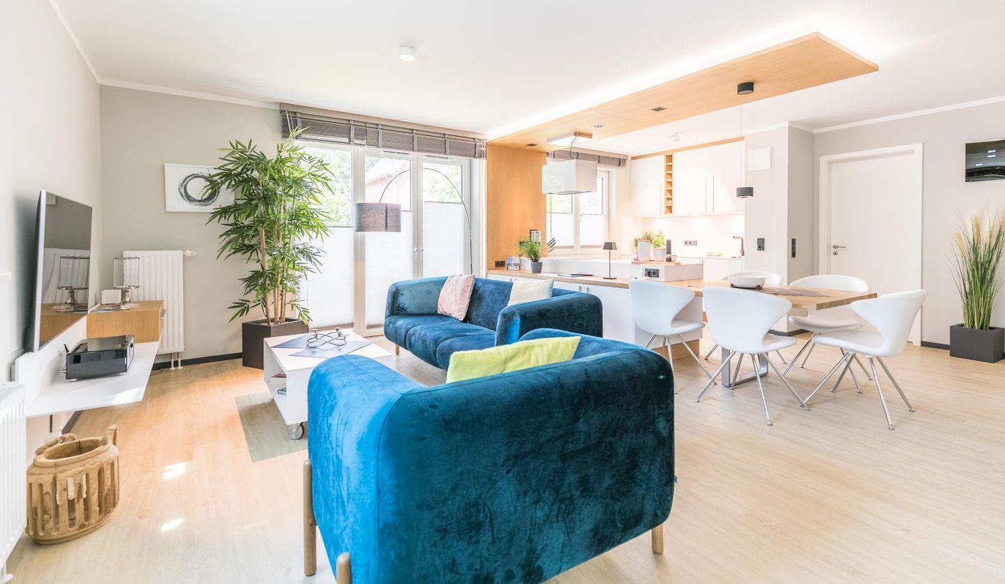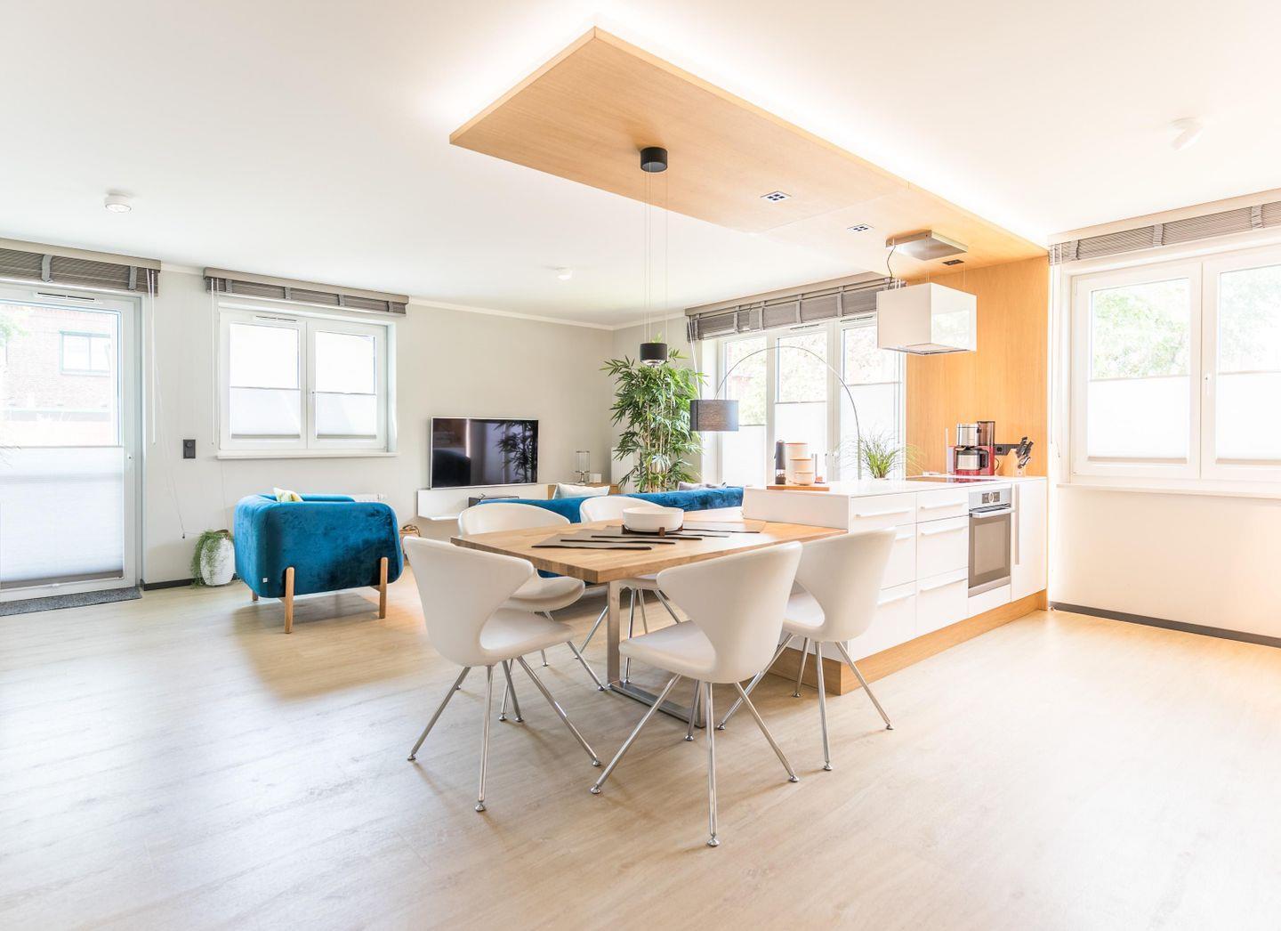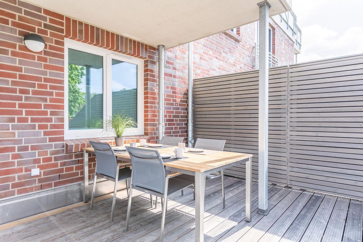 Modernes Ferienapartment "Sandbank 8" in Büsum, 800 m vom Strand, mit großer Terrasse und moderner Ausstattung.