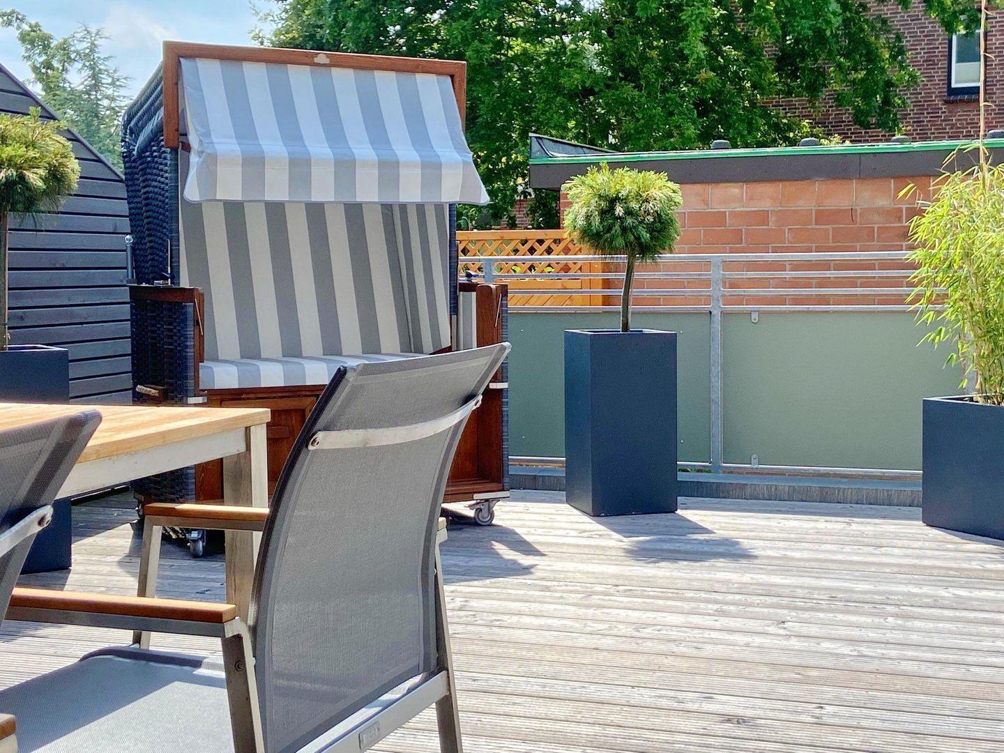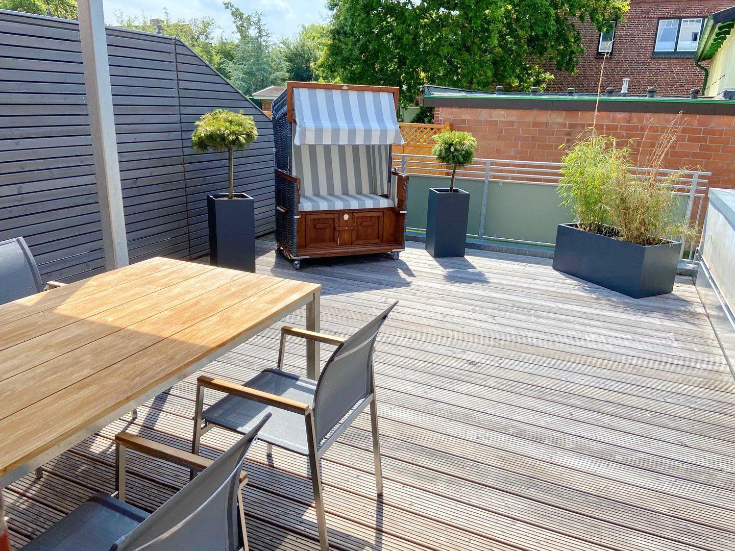 Ein weiteres Highlight ist die geräumige Süd-West-Terrasse, auf der Sie in den Sommermonaten jede Menge Sonne genießen können.