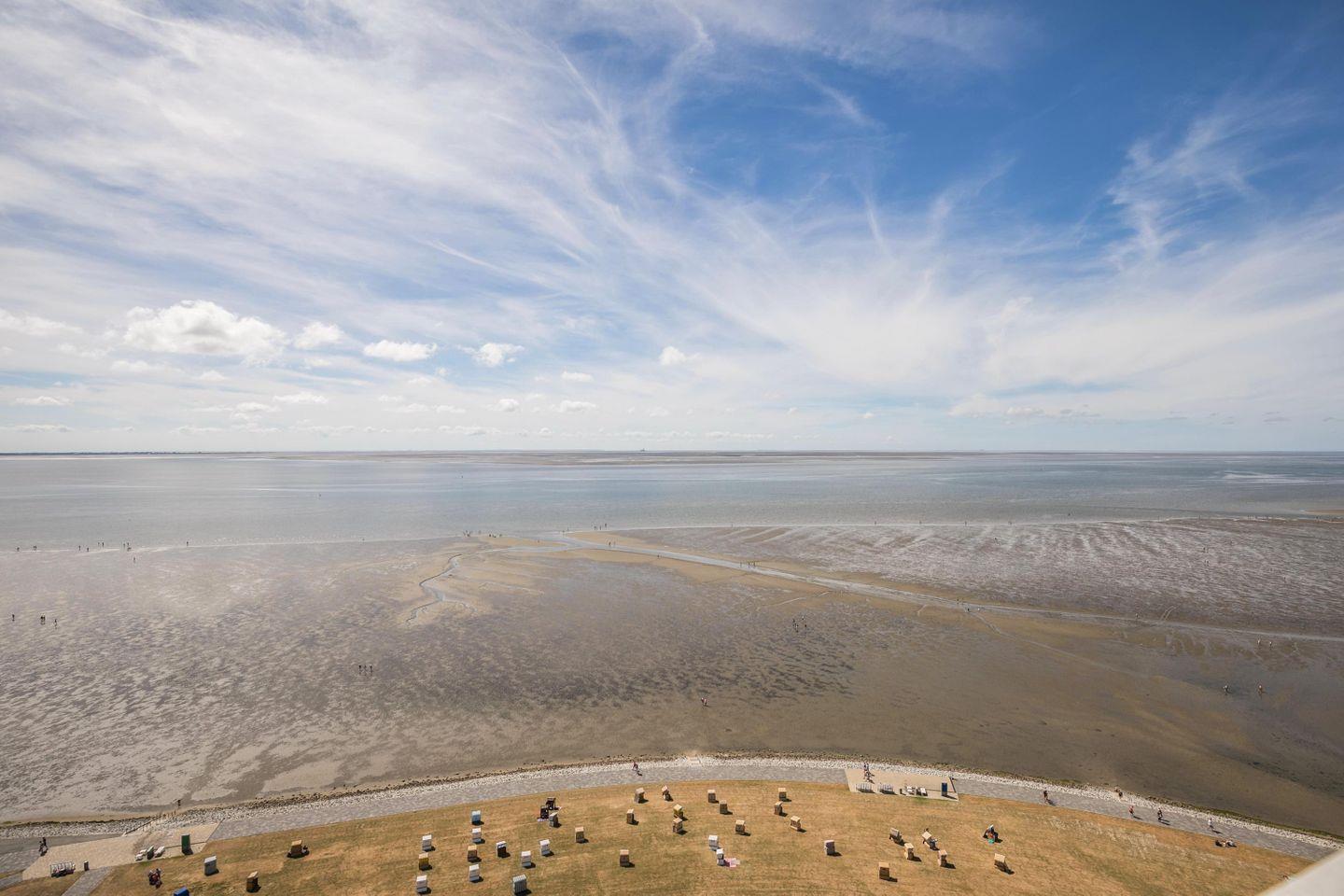 Die Allergiker freundliche Ferienwohnung "Leuchtfeuer" in Südlage mit großem Balkon (sicht- und windgeschützt) und uneingeschränktem Meerblick befindet sich in der 20. Etage des Hochhauses am Kurpark. Von hier aus können Sie den einmaligen Blick über die gesamte Dithmarscher Bucht schweifen lassen.