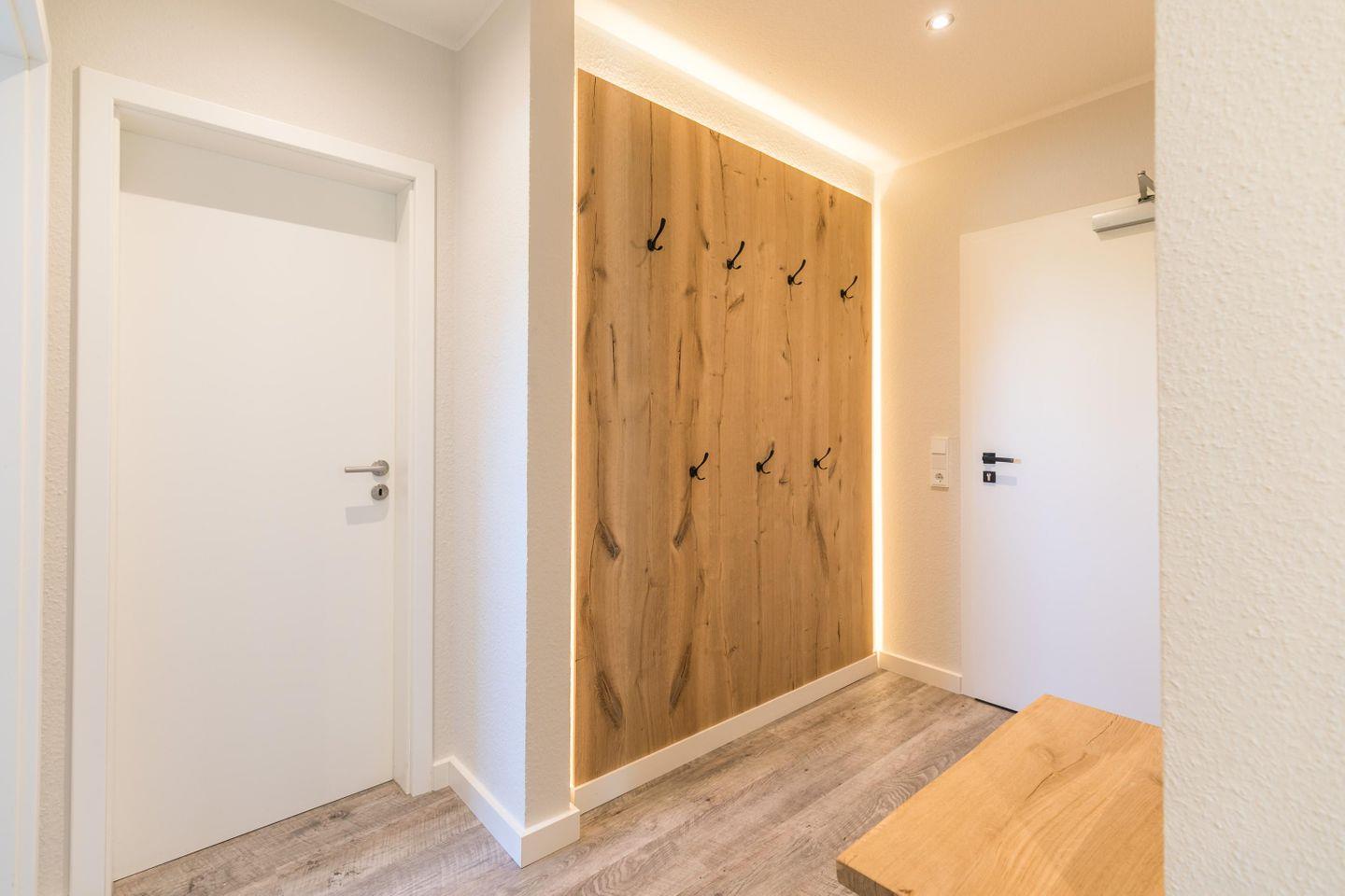 W-LAN, Terrasse mit Gartenmöbeln, Strandkorb, kostenloser PKW-Stellplatz am Gebäude, Diele mit Garderobe und Ganzkörperspiegel, abschließbarer Fahrradabstellraum mit Auflademöglichkeit, gemeinschaftliche Waschmaschine + Trockner im Keller, gemeinsame E-Auto-Ladestation (Wallbox, 22KW), Wäsche optional dazu buchbar