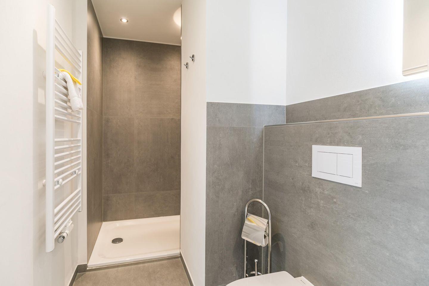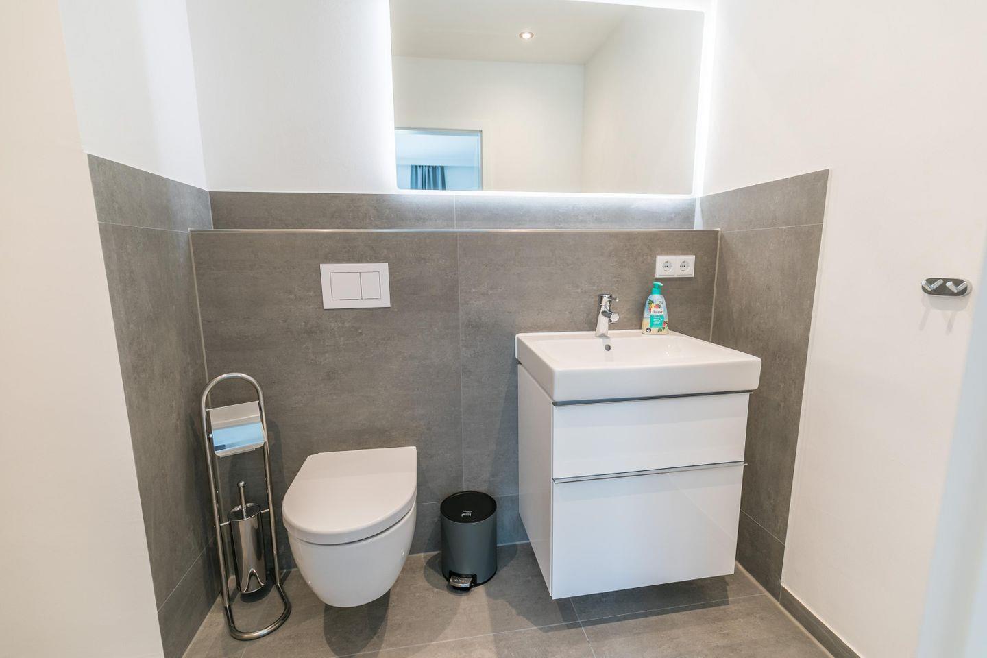 Dusche, WC, Waschbecken, Spiegel, Ablage, Abluft, Handtuchtrockner, Föhn