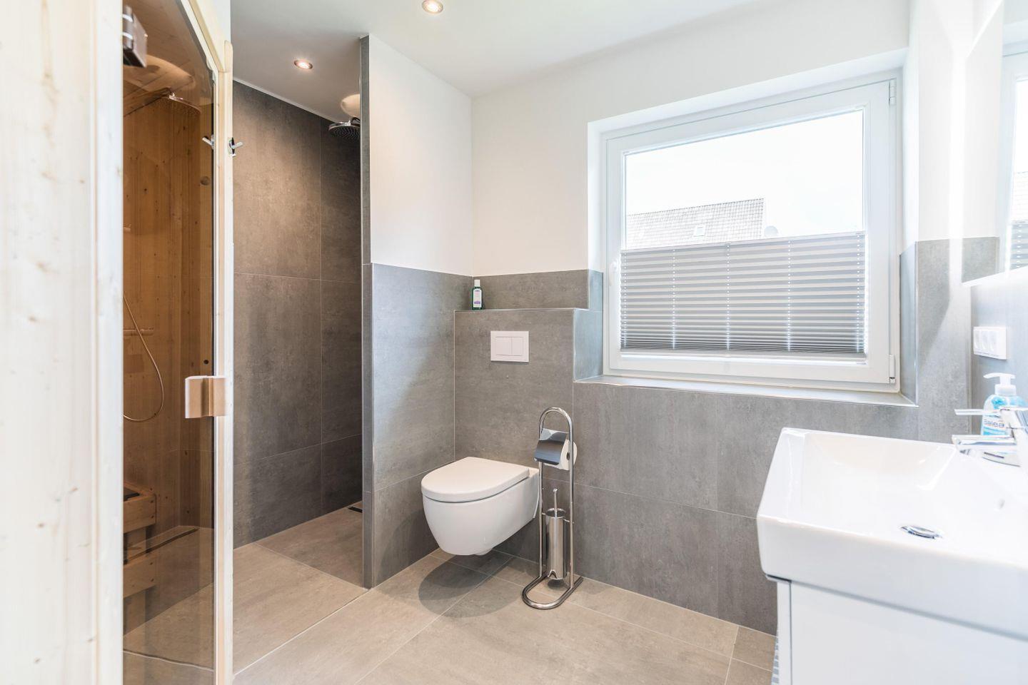 Dusche, WC, Waschbecken, Spiegel, Handtuchtrockner, Föhn, Sauna für 2 Personen
