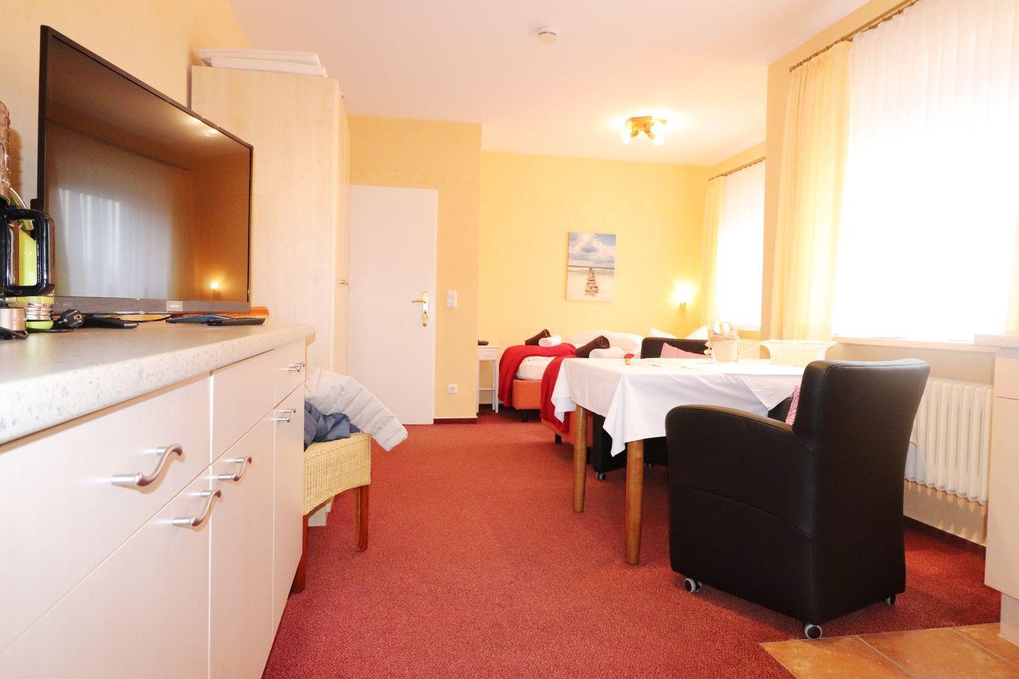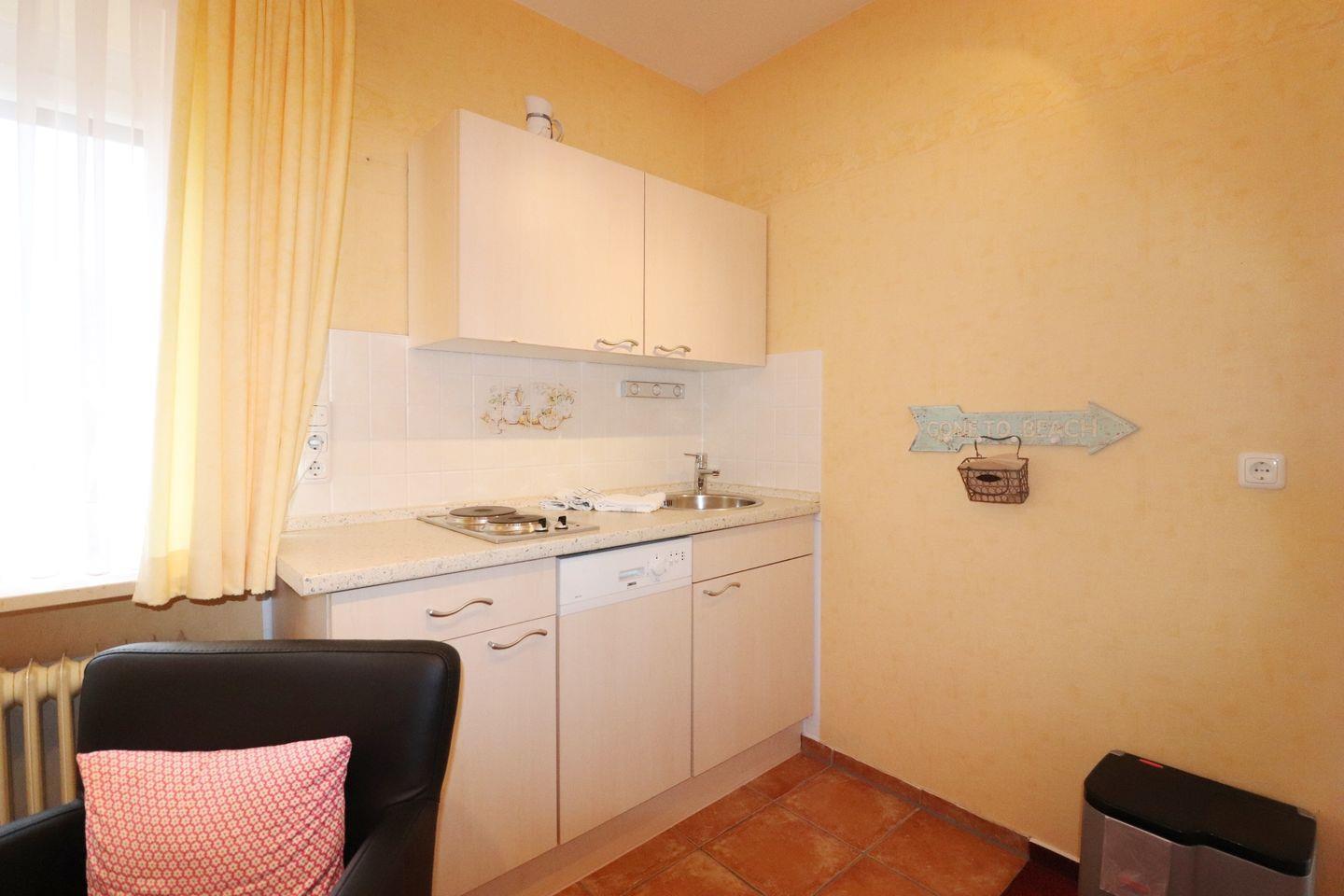Die ruhige, gemütliche 1-Raum-Ferienwohnung in der 1. Etage hat jetzt einen Balkon (Richtung Parkplatz) mit Blick in den Kurpark und ein neues, geräumiges Bad mit Fenster bekommen. Geschirrspüler, Wasserkocher, Kaffeemaschine und Toaster, sowie Geschirr und Besteck für den täglichen Bedarf sind vorhanden.