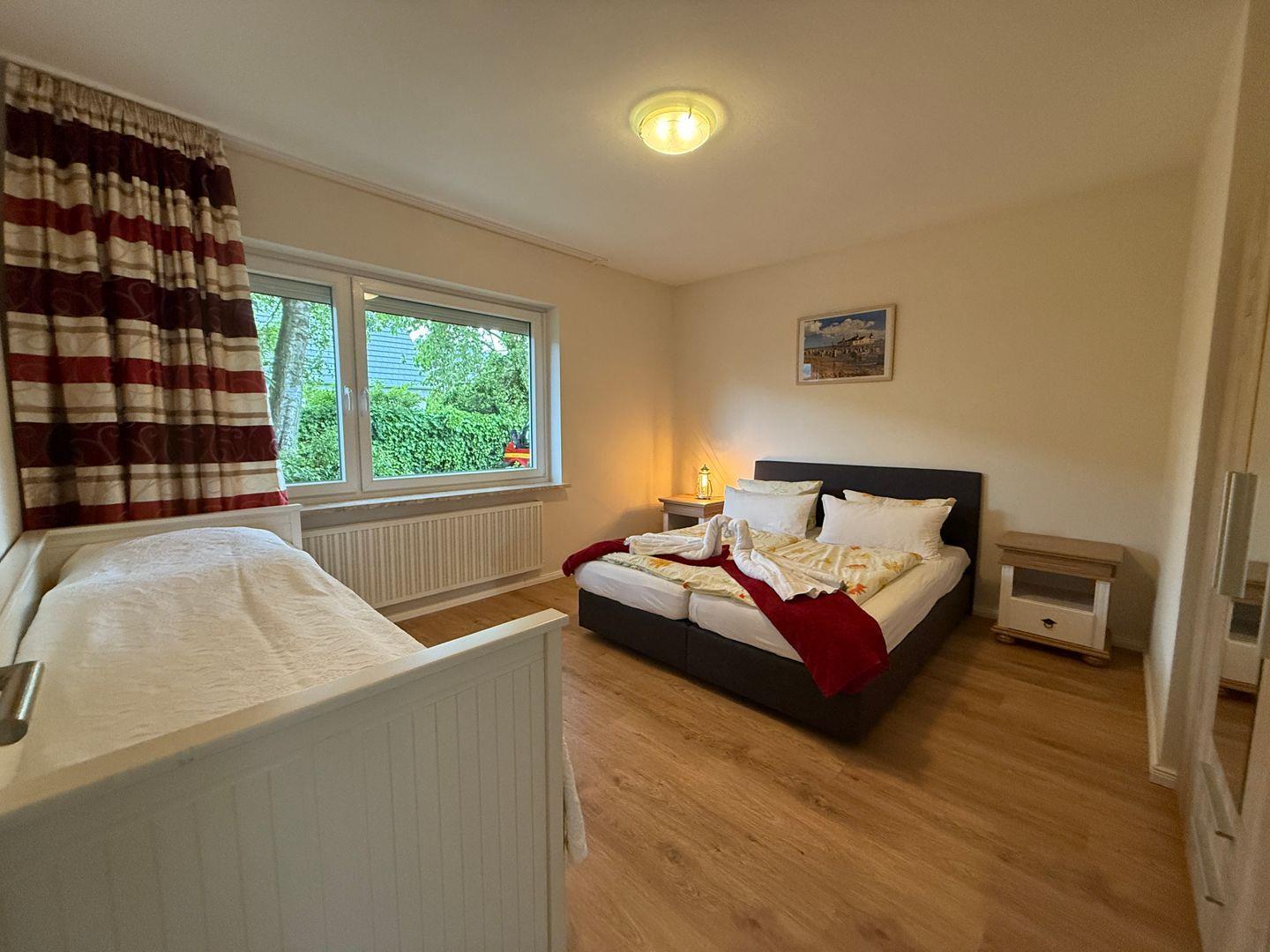 3 Raum-Wohnung für 4 Pers., 2 Schlafzimmer mit je einem Doppelbett + Zusatzbett in einem der Schlafzimmer, Parterre mit Terrasse, Wlan, 2 Bäder