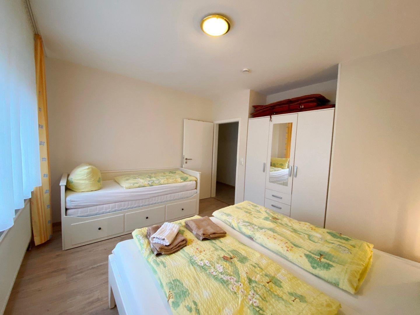 3-Raum-Wohnung für bis zu 5 Pers., 2 Schlafzimmer mit je einem Doppelbett + 1 Zusatzbett in einem der Schlafzimmer, 1. Stock mit Balkon, Wlan, 2 Bäder, Haustiere nicht erlaubt