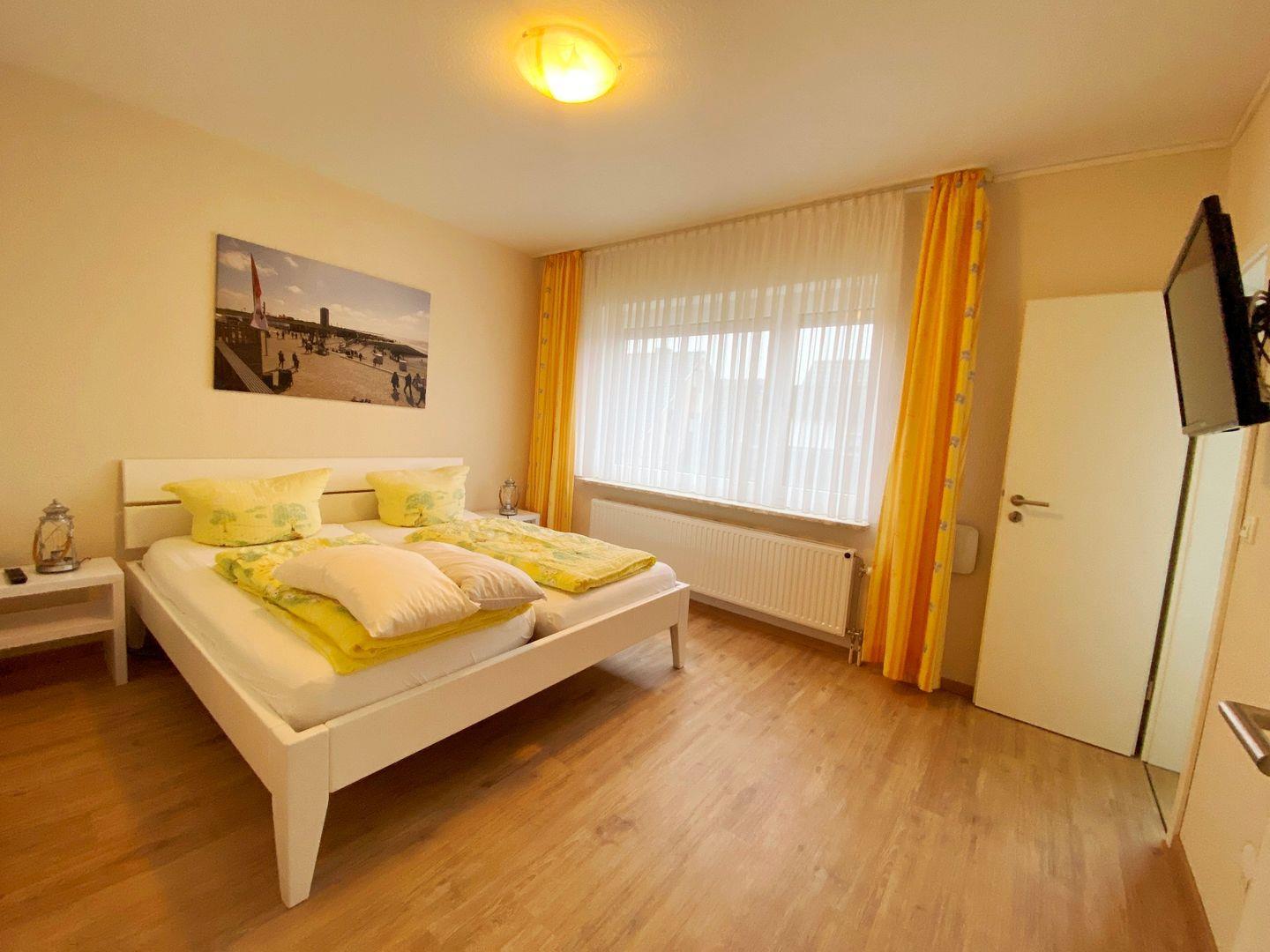 Die 3-Raum-Wohnung im ersten Stock hat ca. 65 m² und 2 Schlafzimmer (2 x Doppelbett, 2. TV im Schlafzimmer vorhanden). Auf Wunsch kann die Wohnung mit einem Kinderbett ergänzt werden. Die Wohnung hat einen Balkon, eine separate Küche und 2 Duschbäder. Die Küche hat einen Geschirrspüler, Mikrowelle, Wasserkocher, Kaffeemaschine, Toaster, sowie Geschirr für den täglichen Bedarf sind ebenfalls vorhanden. Haustiere sind nicht erlaubt. Alle Wohnungen im Haus "Dithmarschen" verfügen über WLAN in der Wohnung.