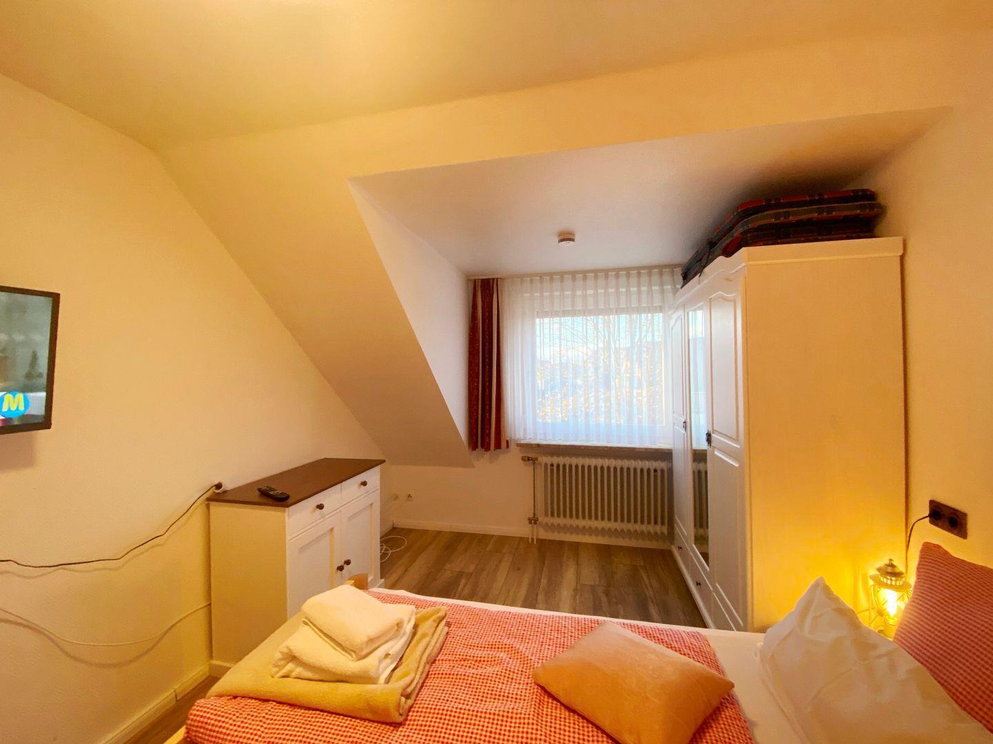 Die 2-Raum-Dachgeschosswohnung im 2. OG hat 49 m² und 1 Schlafzimmer (1 x Doppelbett). Durch das komfortable Seniorenbett ist es für alle Generationen geeignet. Gemütlich möbliert und mit allem ausgestattet kann man sich hier wohl fühlen. Die Wohnung hat eine Küche, 2x TV und ein separates Duschbad. Die Küche hat einen Wasserkocher, Kaffeemaschine, Toaster, sowie Geschirr für den täglichen Bedarf sind ebenfalls vorhanden. Haustiere nach Absprache erlaubt.