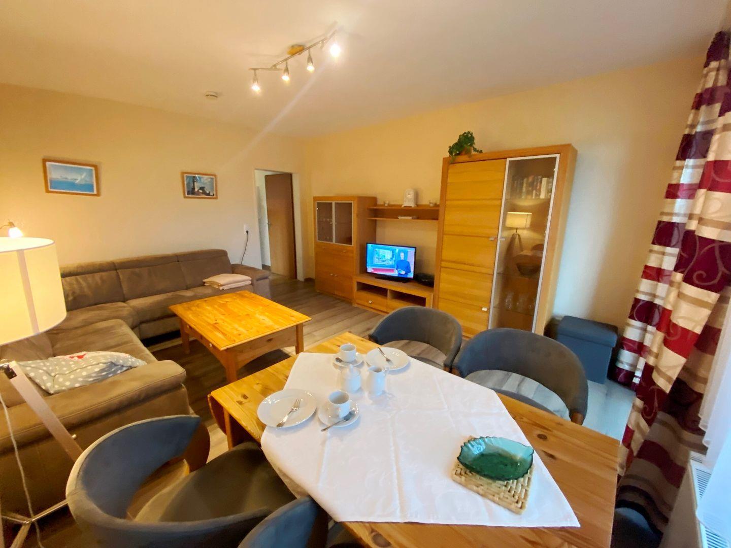Das 2-Raum Appartement im 1. OG auf ca. 47 m² hat 1 Schlafzimmer (1 x Doppelbett und 1 x Einzelbett), ein Wohnzimmer mit Balkon zur Seeseite (Süden) mit Blick in den Kurpark, separate Küche und Duschbad. Die Wohnung ist gemütlich eingerichtet. Die Einbauküche verfügt über einen Geschirrspüler, Backofen, Mikrowelle, Wasserkocher, Kaffeemaschine, Toaster, sowie Geschirr für den täglichen Bedarf sind ebenfalls vorhanden. Haustiere sind nicht erlaubt.