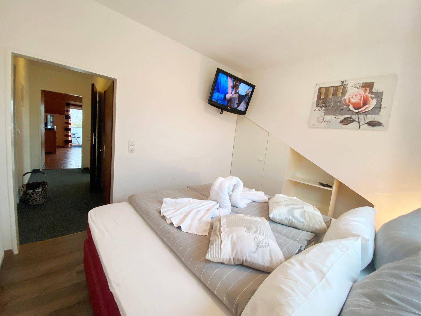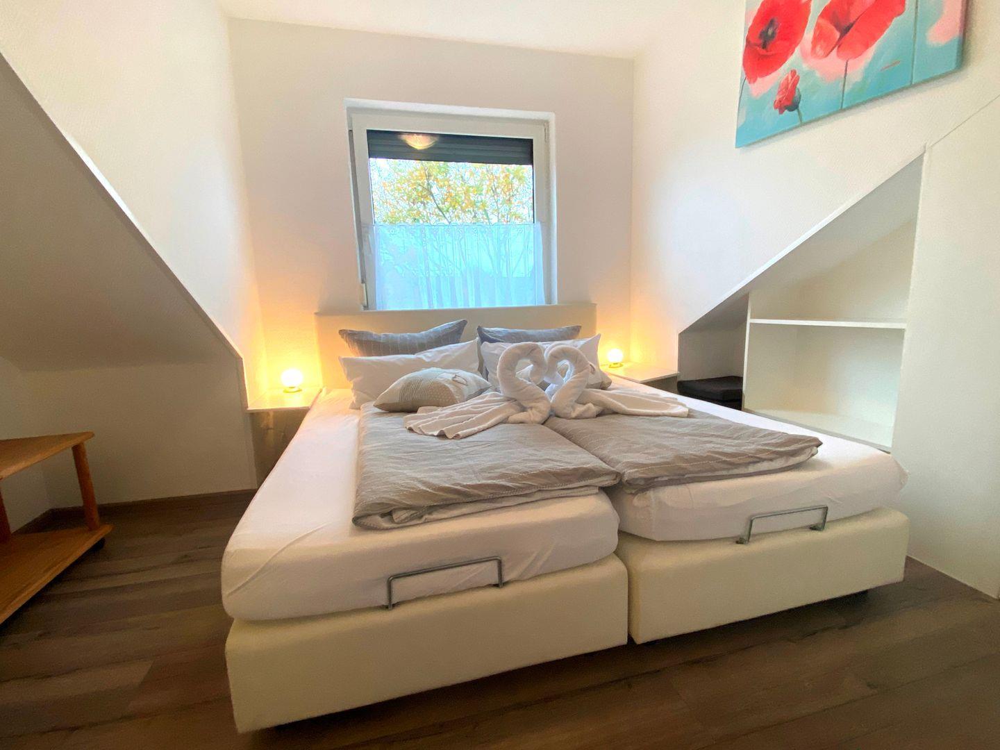 Unser Haus ist direkt in erster Reihe hinterm Deich am Kurpark gelegen mit eingeschränktem Seeblick (Saisonbedingt durch die Bäume). Das 4-Raum Appartement im 2. OG hat 2 Luxusbäder und 3 Schlafzimmer (2 x Doppelbett , 2 x Einzelbett), ein Wohnzimmer mit Doppelbalkon mit Seeblick und offener Küche, 4 x TV. Die Wohnung ist gemütlich eingerichtet. Die Einbauküche verfügt über einen Geschirrspüler, Backofen, Mikrowelle, Wasserkocher, Kaffeemaschine, Toaster, sowie Geschirr für den täglichen Bedarf sind ebenfalls vorhanden. Haustiere sind nicht erlaubt.