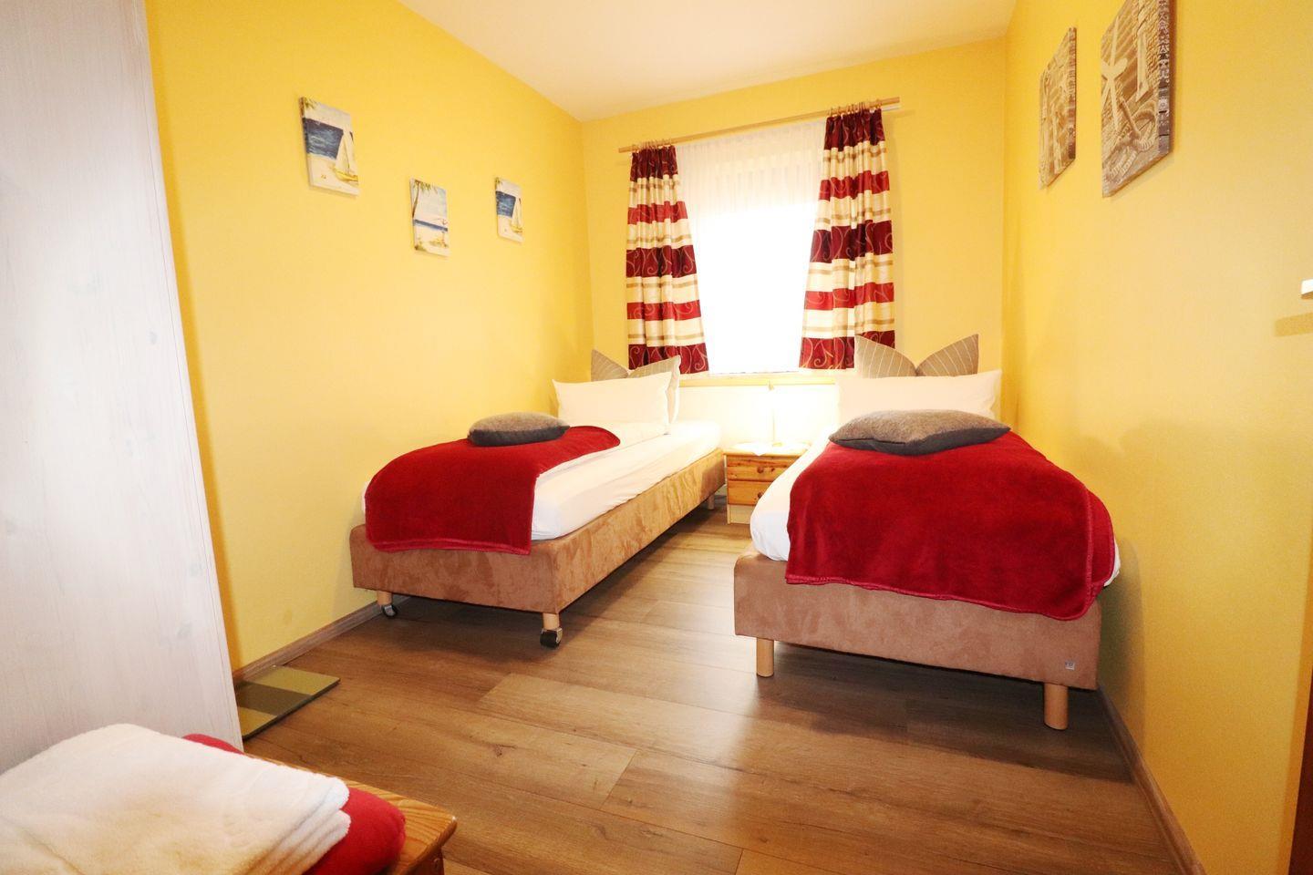 Die 2-Raum-Erdgeschosswohnung ist ca. 44m² groß, hat 1 Schlafzimmer ( 2 Einzelbetten) und ein Wohnzimmer. Die Wohnung verfügt über eine separate Küche und Duschbad. Die Küche hat einen Wasserkocher, Kaffeemaschine, Toaster, Geschirrspüler, sowie Geschirr für den täglichen Bedarf sind ebenfalls vorhanden. Die Terrasse lädt zum Entspannen ein. Haustiere nach Absprache erlaubt.