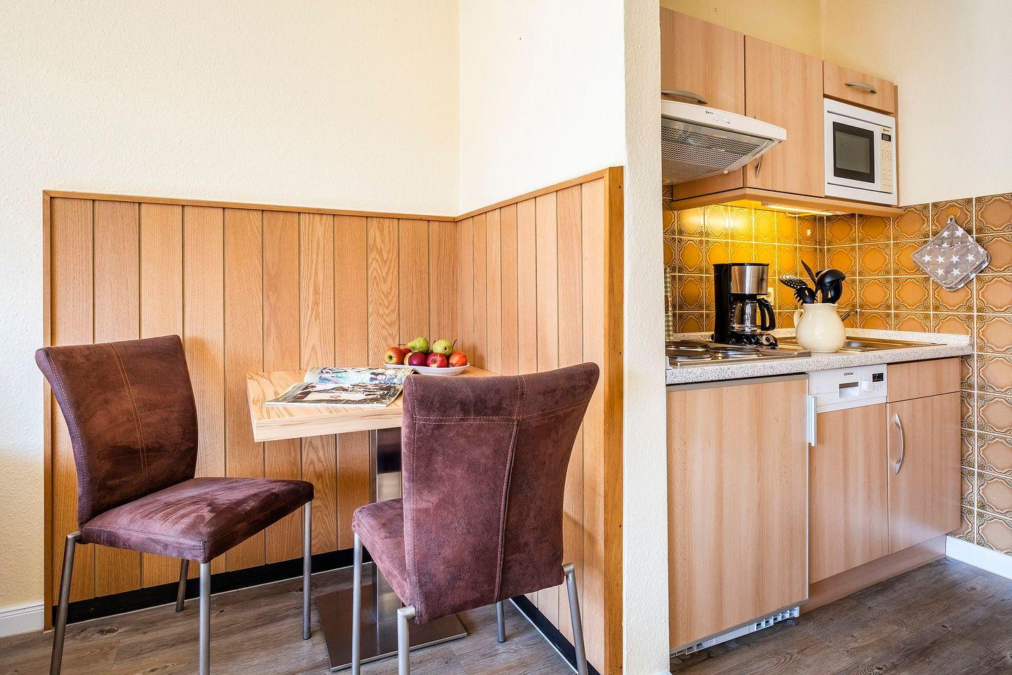 1 Wohnzimmer mit Essbereich, eine kleine Küche,1 Schlafzimmer und 1 Duschbad .