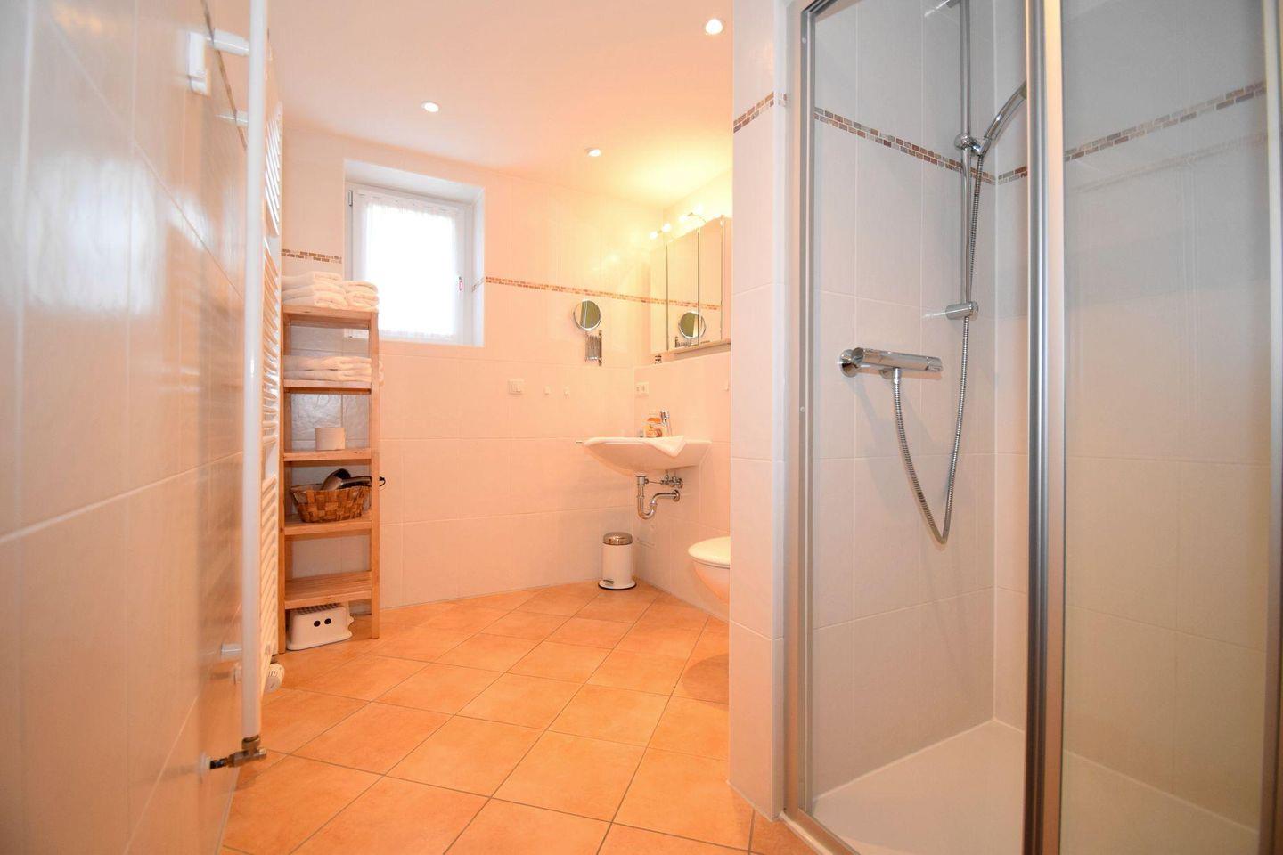 Sanitär: Duschbad mit ebenerdiger Dusche, 1x WC,Haar-Föhn, Kosmetikspiegel