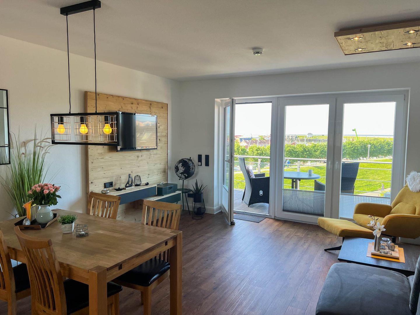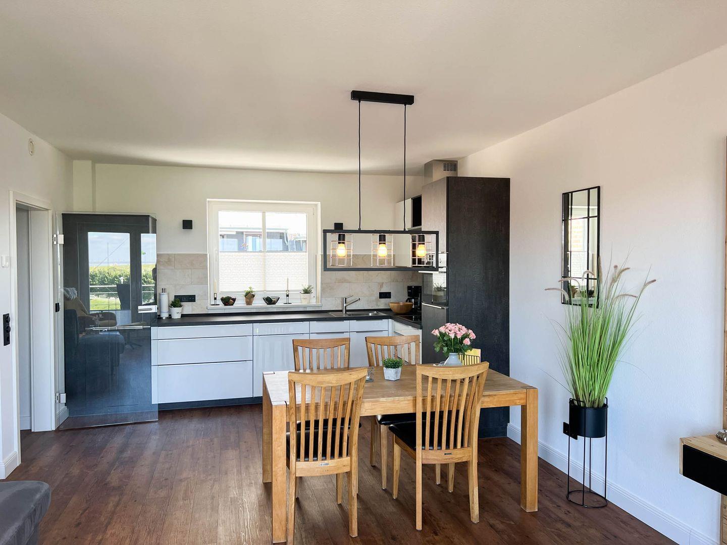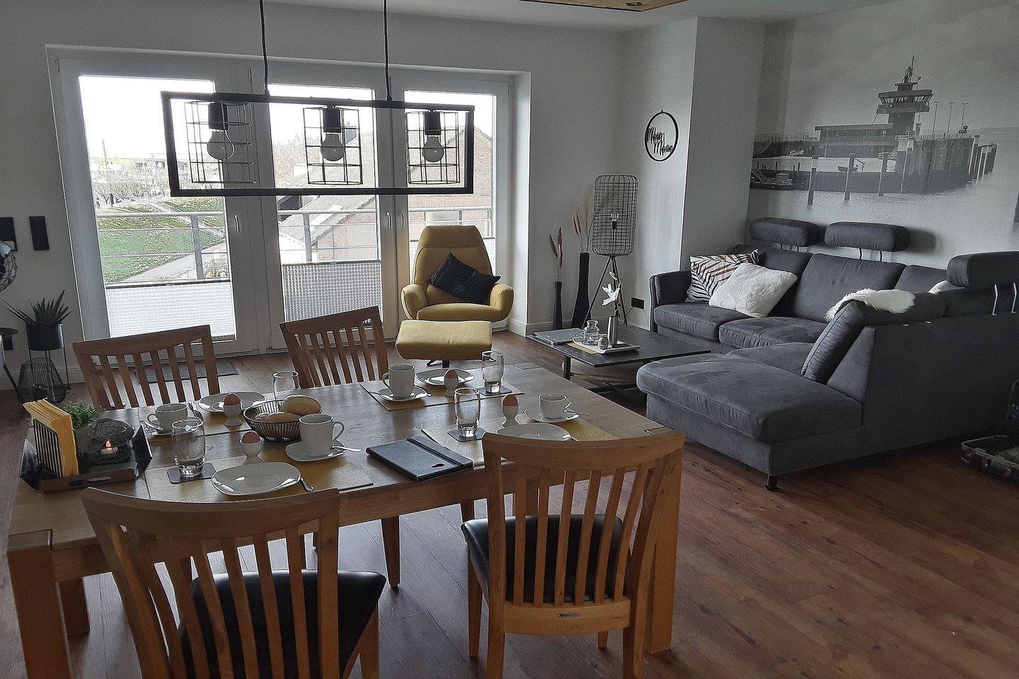 Komfortable Ferienwohnung am Hafen von Büsum mit Balkon, moderner Küche und WLAN, nur 250 m vom Strand entfernt.