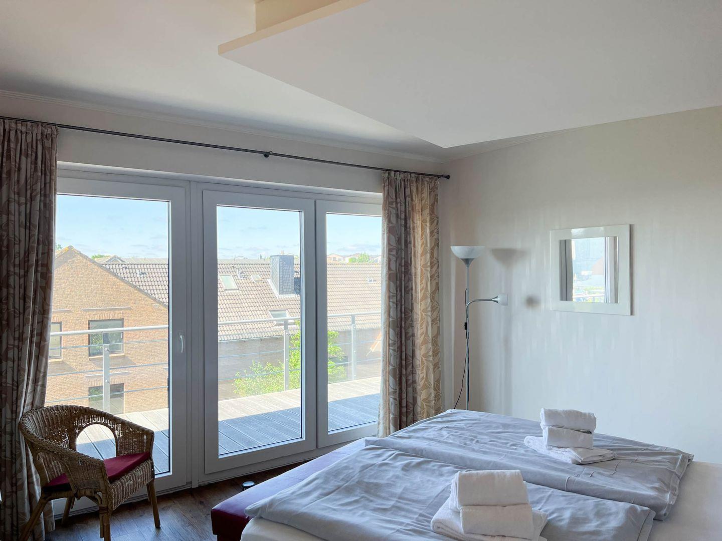 Vom Wohnbereich gelangen Sie direkt auf den Balkon. 2 Schlafzimmer.