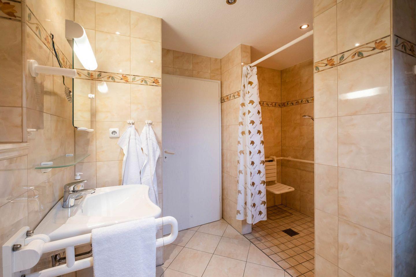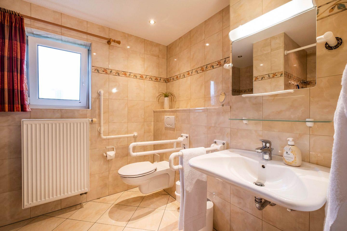 In dem behindertenfreundlichen Appartement im Hochparterre erwartet Sie: 1 Wohnzimmer mit Essbereich, eine Küchenzeile, 2 Schlafzimmer und 1 Duschbad. Das Bad verfügt über eine begehbare Dusche und ein WC mit Haltegriff. Vom Wohnbereich gelangen Sie auf den Balkon. Das eine Schlafzimmer verfügt über ein Doppelbett mit elektrisch verstellbarem Lattenrost und TV, das 2. Schlafzimmer verfügt über 2 Einzelbetten. Der Wohnung ist ein PKW - Stellplatz direkt am Haus zugehörig.