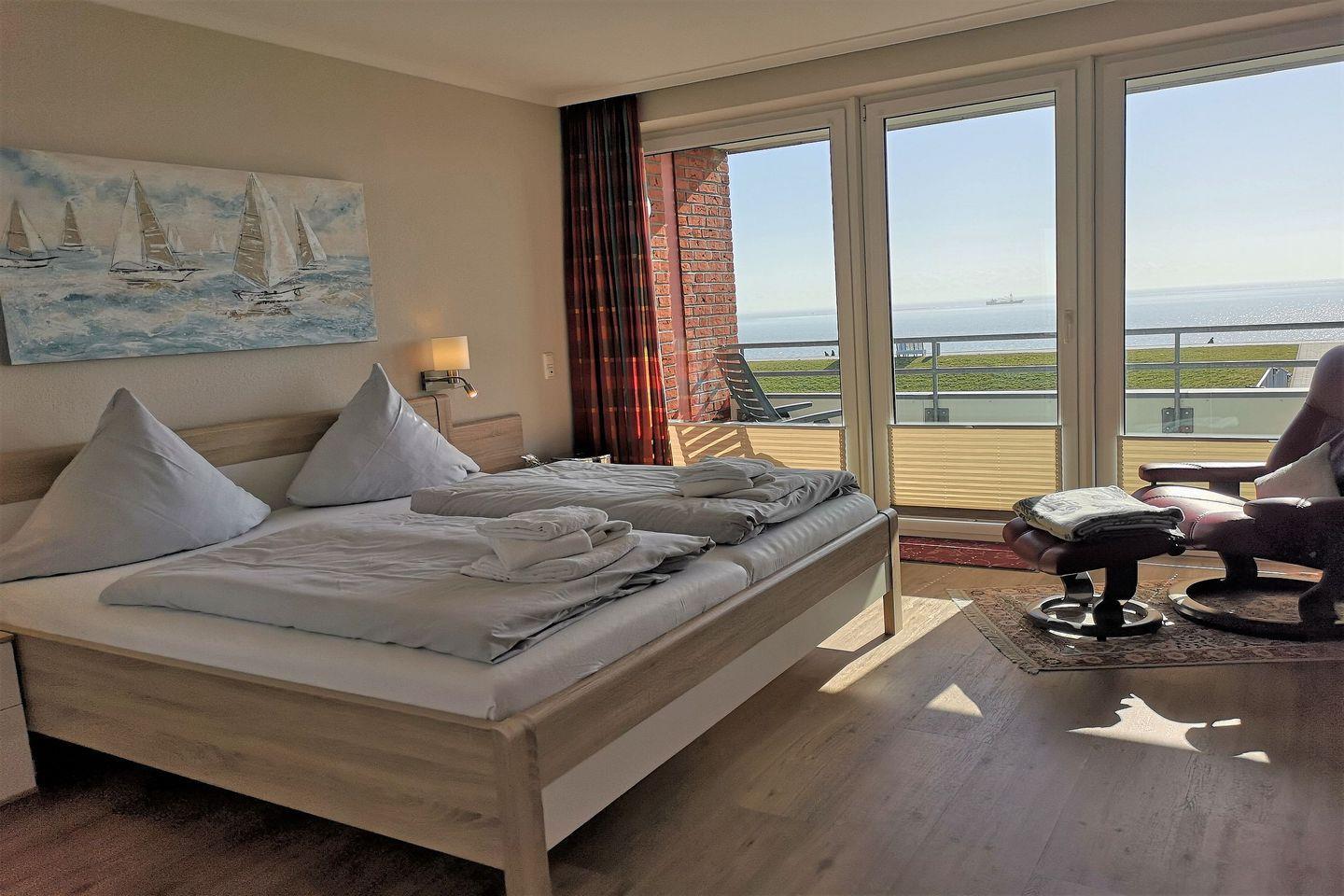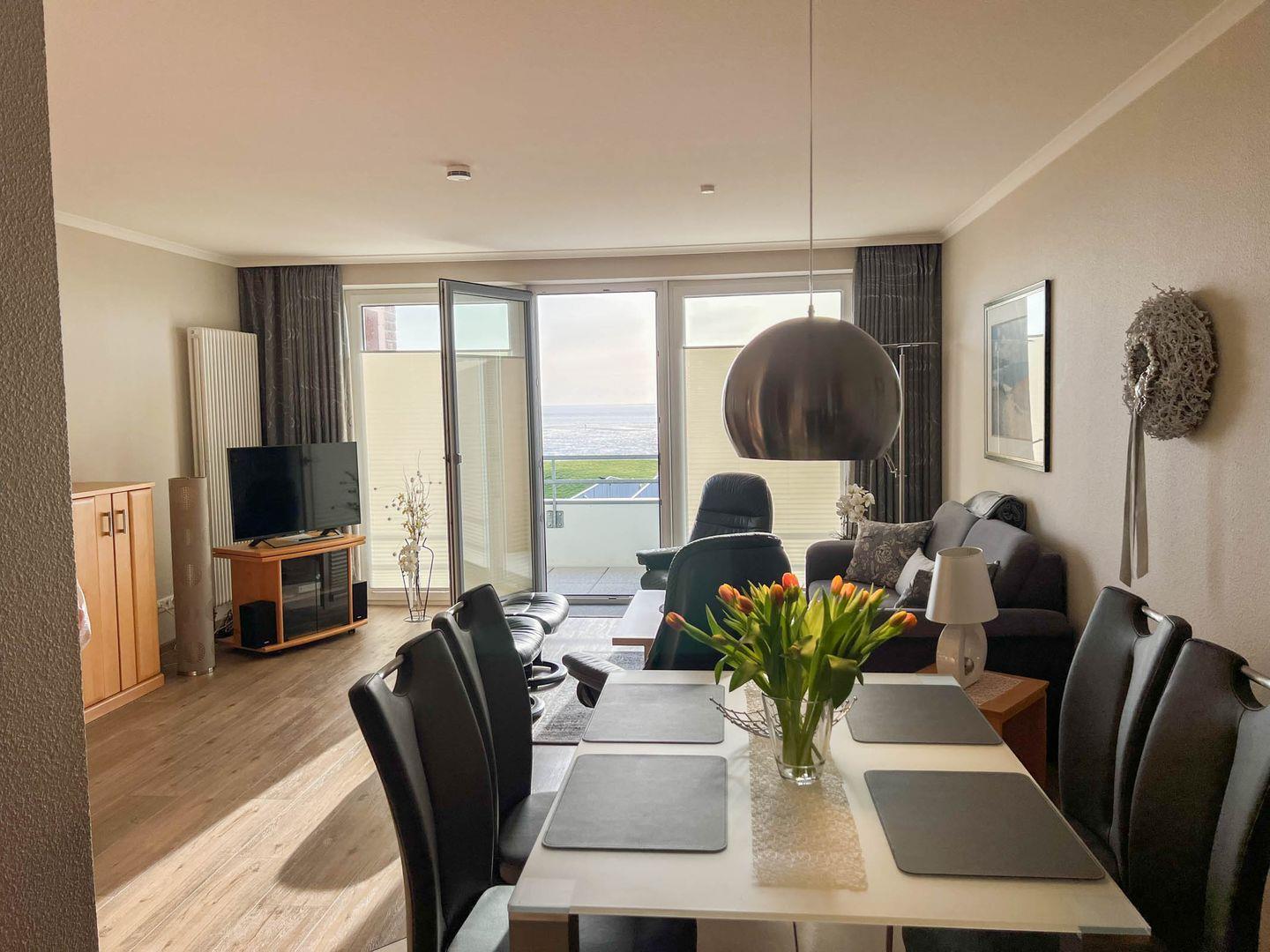 Ferienwohnung in Büsum mit herrlichem Meerblick, Sauna und Balkon für erholsame Tage am Strand.