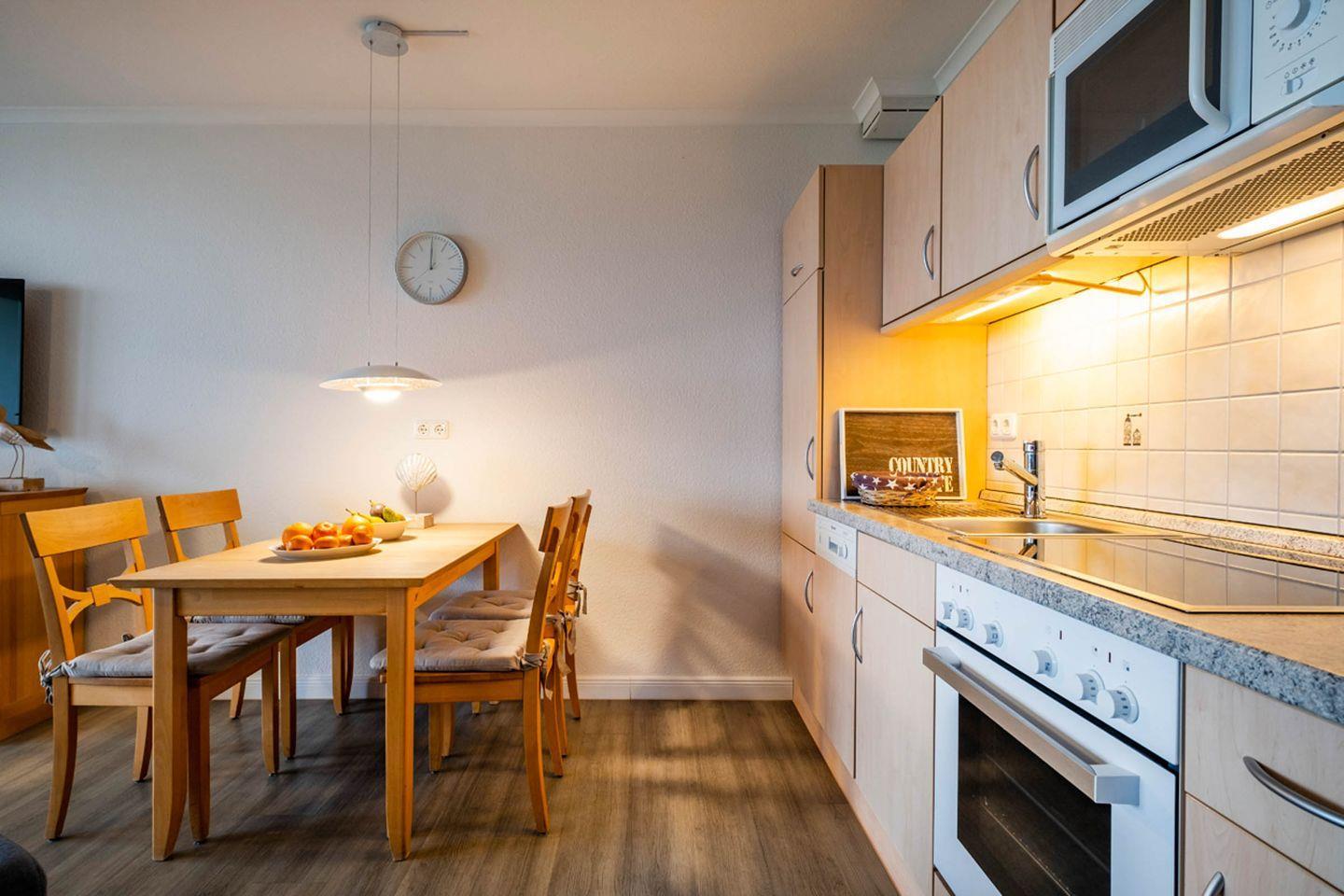 1 Wohnzimmer mit Essbereich, eine Küchenzeile, 1 Schlafzimmer mit TV und 1 Duschbad. Das Bad verfügt über eine Dusche/WC. Vom Wohnbereich gelangen Sie auf den Balkon. Das Schlafzimmer verfügt über ein Doppelbett mit elektrisch verstellbarem Lattenrost. Der Wohnung ist ein PKW-Stellplatz direkt am Haus zugehörig.