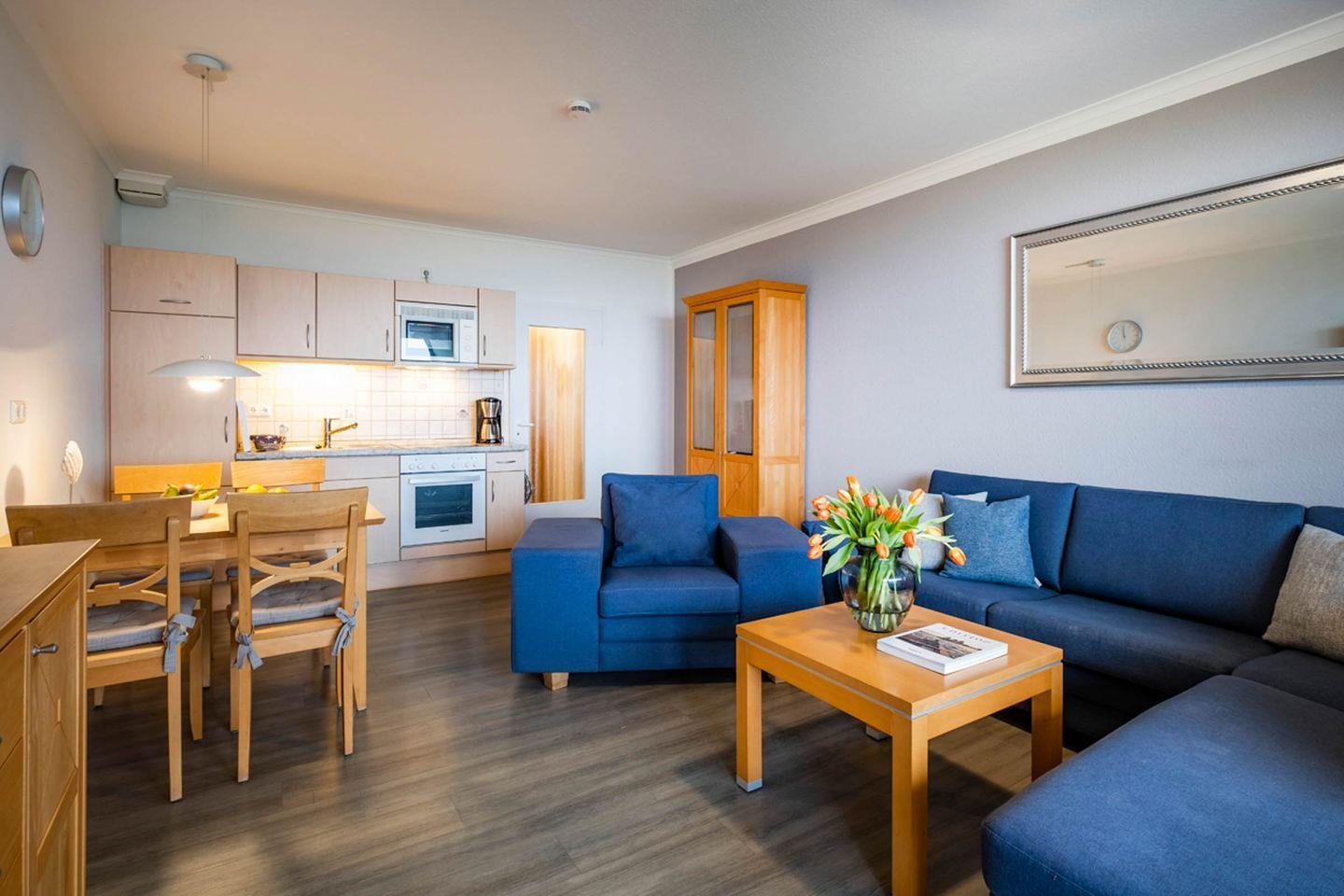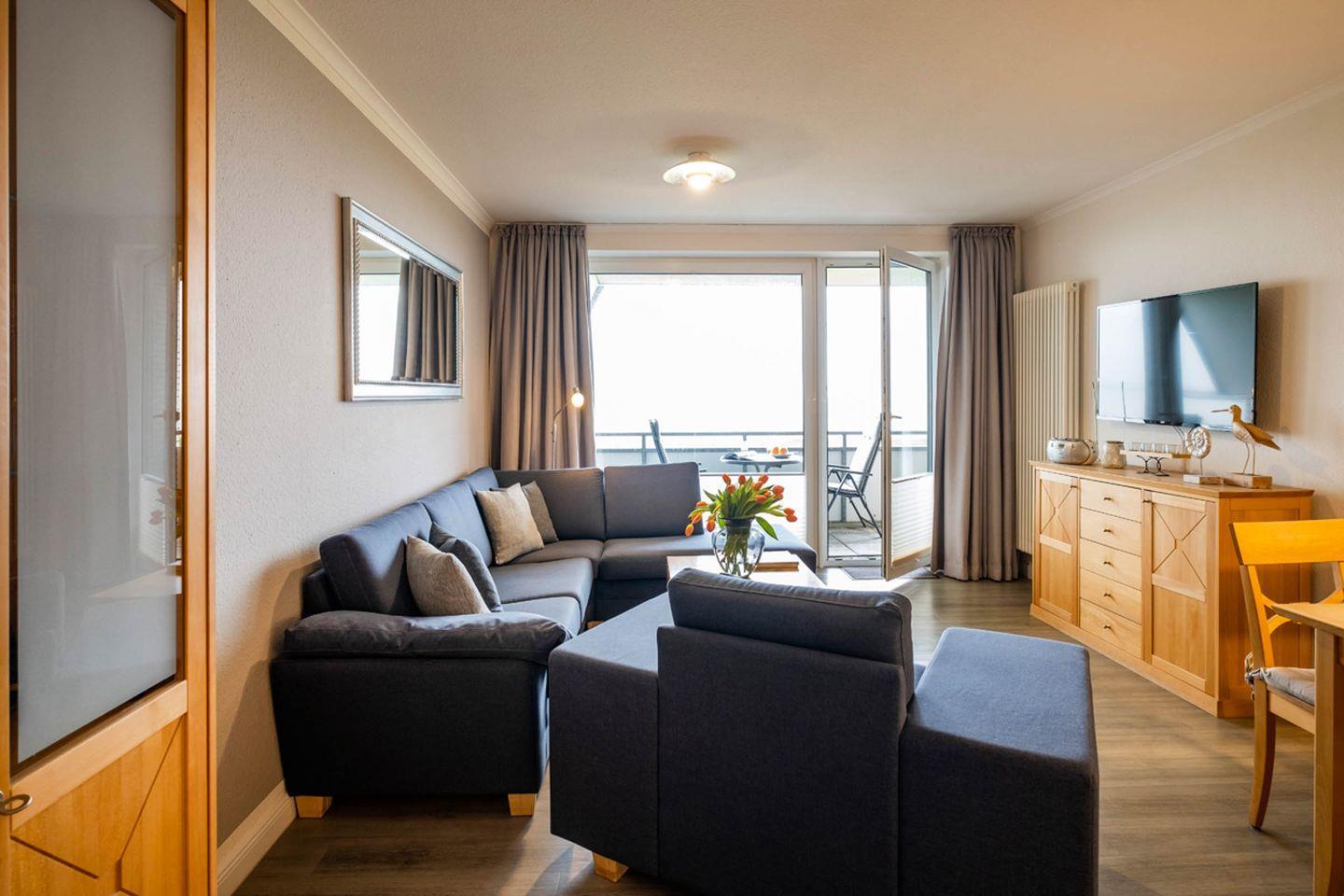 Das Haus Seewärts Wohnen Apartment 3.6 bietet auf 50 m² im dritten Stock ein komfortables Ambiente mit fantastischem Meerblick, Balkon und moderner Ausstattung. Sie profitieren von einer offenen Küche mit Spülmaschine, WLAN, zwei TV-Geräten und Zugang zur Sauna. Der Strand, Einkaufsmöglichkeiten und Restaurants befinden sich in nur 250 m Entfernung. Ein Privatparkplatz steht zur Verfügung.