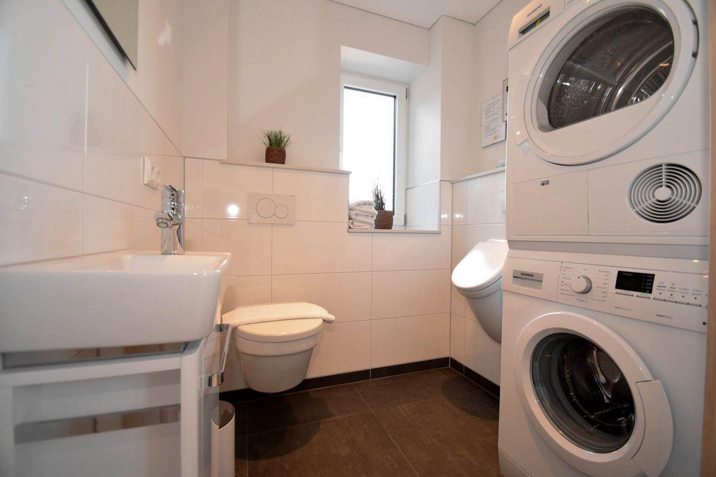 Sanitär: 2 Duschbäder mit Regendusche, Gäste-WC, Föhn, Urinal