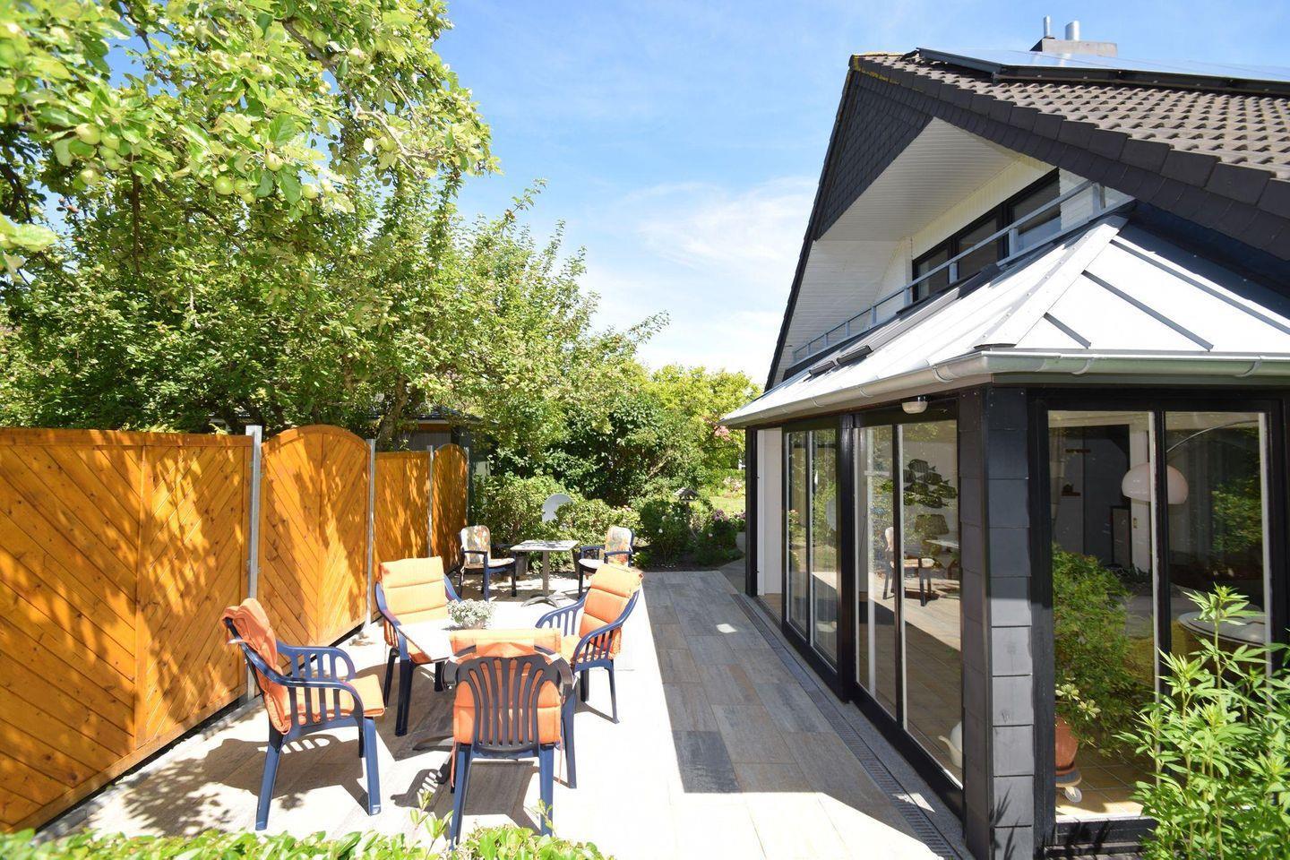 Modernes Ferienhaus in Büsum mit Wintergarten, Terrasse und Strandnähe für erholsame Tage.