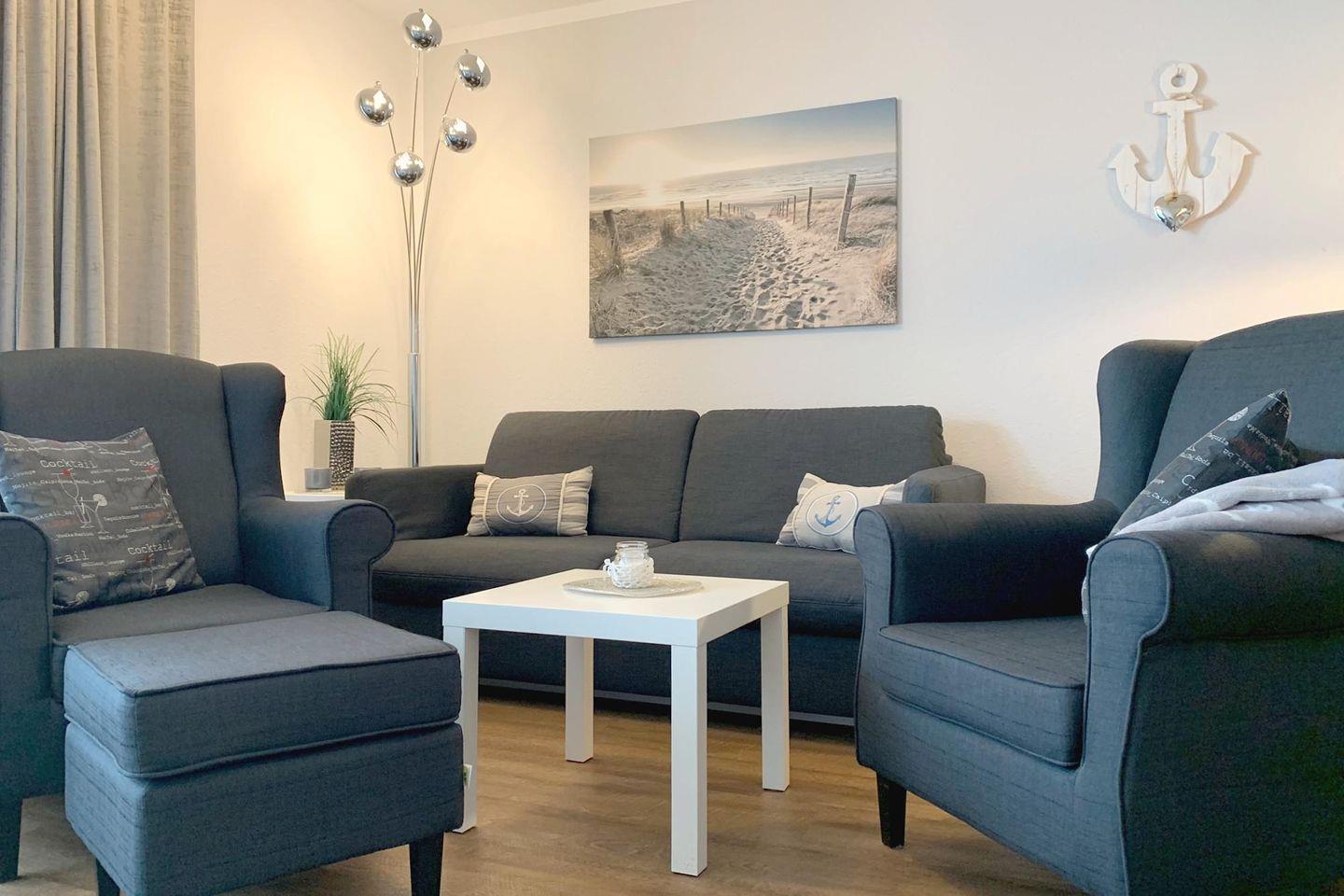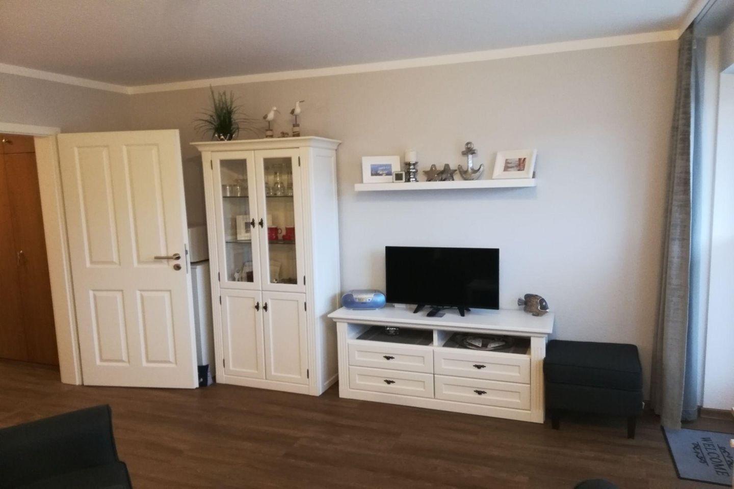 Herzlich Willkommen in dieser schönen Ferienwohnung, in welcher Sie sich in Ihrem Urlaub bestimmt wohl fühlen werden und welche auf rund 41qm alles bietet, was Sie hierfür benötigen. Das lichtdurchflutete Wohnzimmer wurde erst kürzlich mit neuen Möbeln ausgestattet. Hier können Sie den Abend nach einem angenehmen Urlaubstag ausklingen lassen und entspannen. Einen schönen Film können Sie auf dem Flachbildfernseher genießen. Das Sofa kann mit wenigen Handgriffen zu einem bequemen Schlafsofa umfunktioniert werden. Der Essbereich lädt zum gemütlichen Essen oder auch einem spannenden Spieleabend ein. Die integrierte offene Küche ist komplett eingerichtet und besticht zusätzlich mit einer Kaffeemaschine, einer Spülmaschine, einer Mikrowelle und einer kleinen Kühl- und Gefrierkombi.