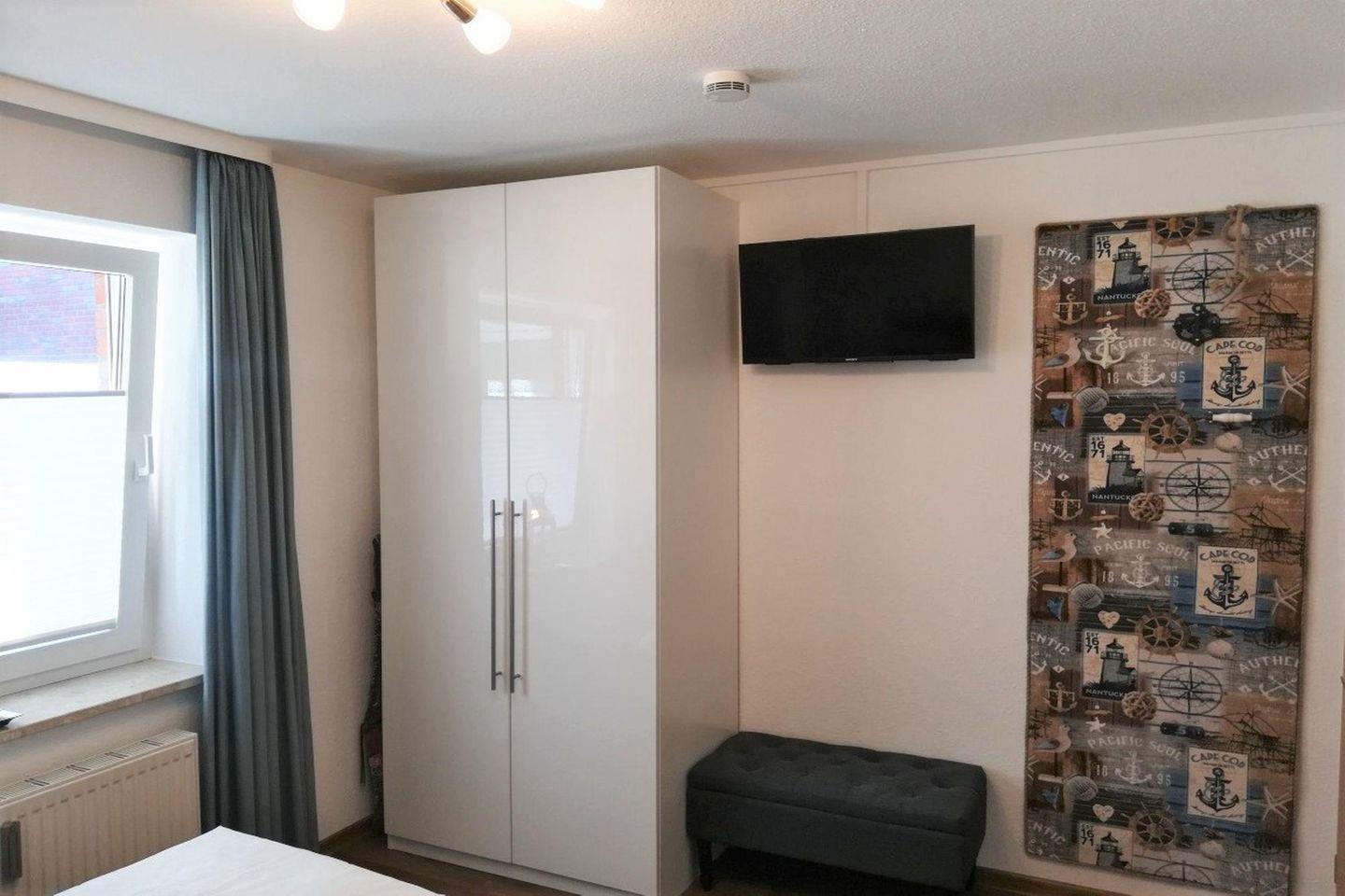 Das separate Schlafzimmer ist mit einem hochwertigen Boxspringbett (1,80m x 2,00m) ausgestattet, welches Ihnen auf 2 separaten Matratzen einen Schlaf wie auf Wolken beschert. Ihre Kleidung findet Ihren Platz im Kleiderschrank. Weiterhin steht Ihnen auch hier ein Fernseher zur Verfügung.