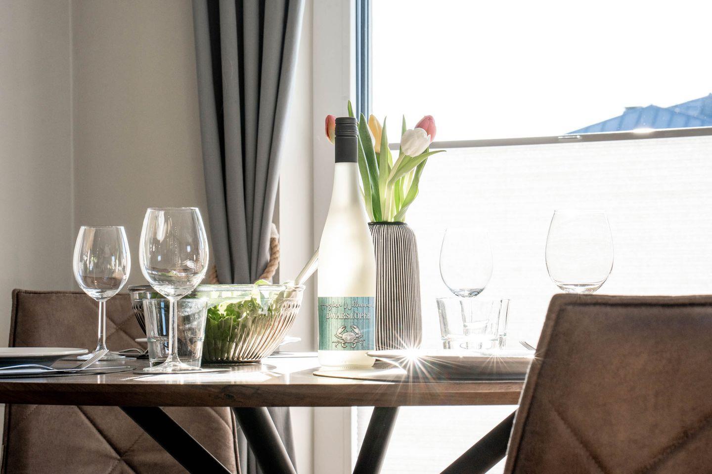 Das Apartment 3.1 "DWARSLÖPER" befindet sich im 3.OG, Außenlage und hat einen großen Balkon in Südwestlage mit wundervollem Ausblick bis zur Nordsee. Die neue Küche erfreut den Gast mit hochwertigen Markengeräten. Am runden Esstischgenießen Sie beim Essen den Nordseeblick und im übergehenden Wohnzimmer, aufgrund der neuen Möbel, der maritimen Dekoration und der hübschen Farbe an den Wänden eine wunderbare, angenehme Wohlfühlatmosphäre.