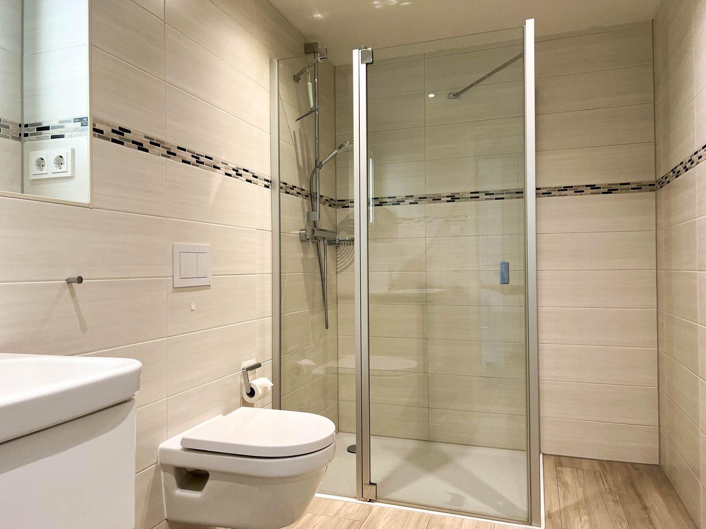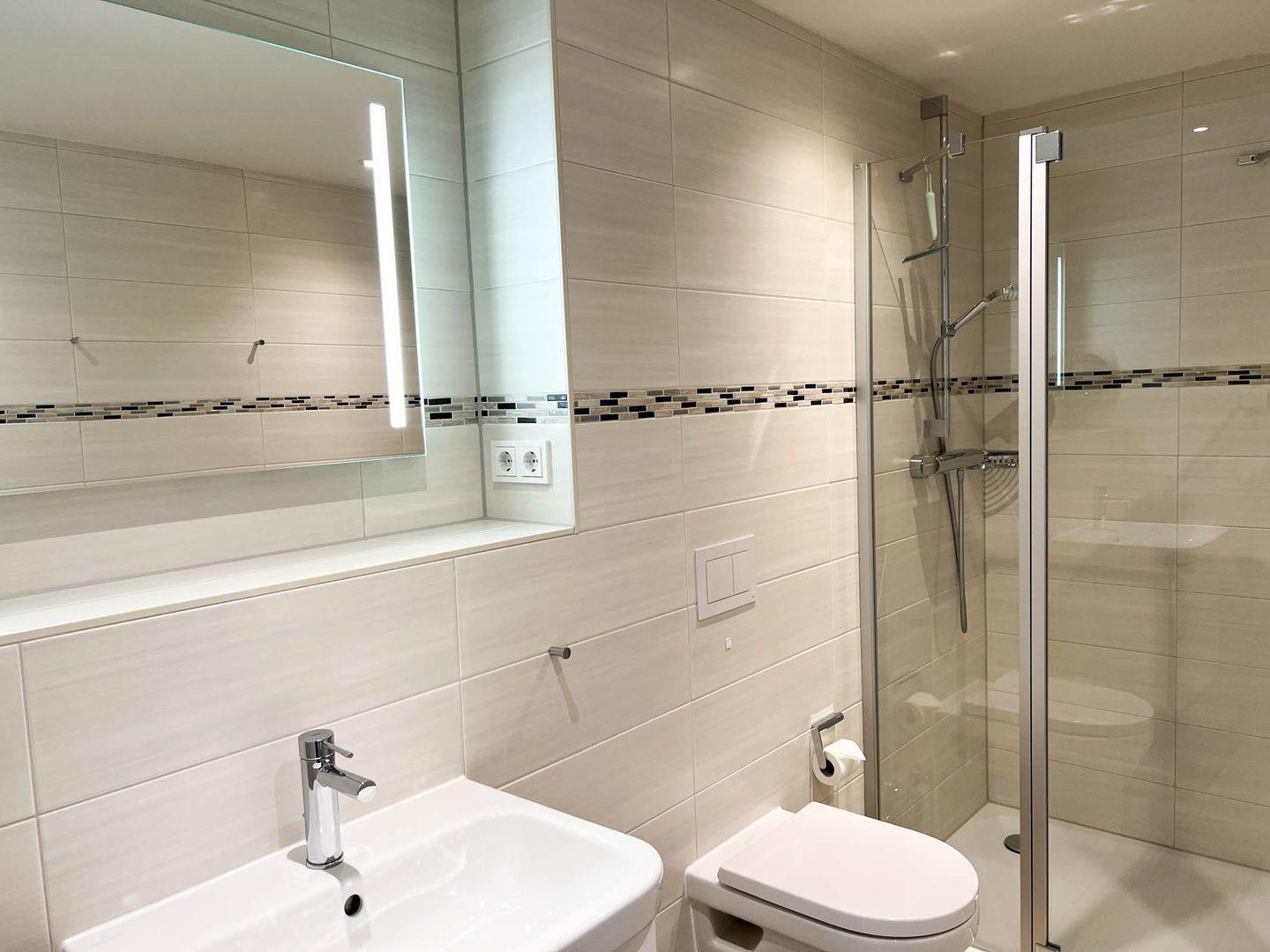 Sanitär: Duschbad, Handtuchheizung, Haar-Föhn