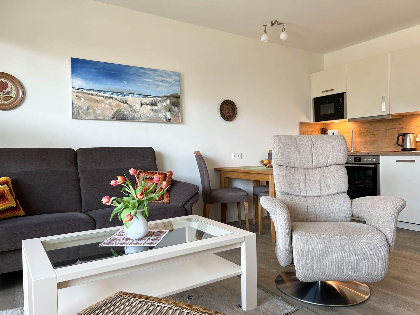 Modernes Apartment mit Balkon, Sauna und Meerblick in Büsum, nur 250 m vom Strand entfernt.