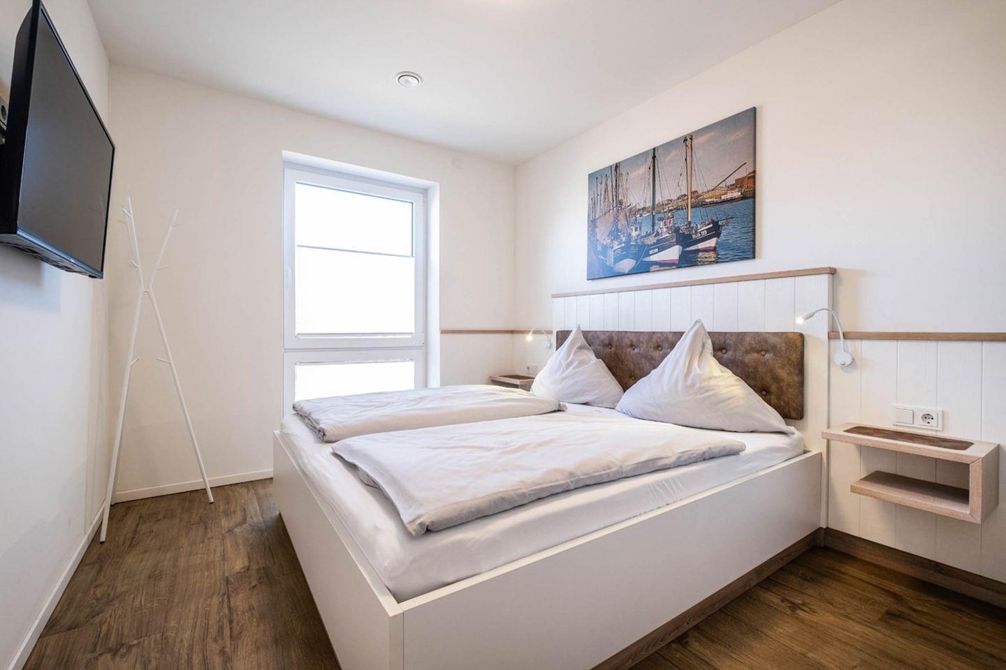 Das Appartement 1.6 (Deich Lounge) ist ein großzügig geschnittenes Appartement mit 2 Schlafzimmern (ausgestattet mit jeweils Doppelbett und Fernsehgerät) und 2 kompletten Duschbädern. Eins der Duschbäder ist en-Suite. Die Wohnung ist modern, gemütlich und liebevoll eingerichtet. Dem Appartement ist ein PKW- Stellplatz direkt am Haus zugehörig. Ein Fahrradraum, der abschließbar ist, befindet sich am Haus.