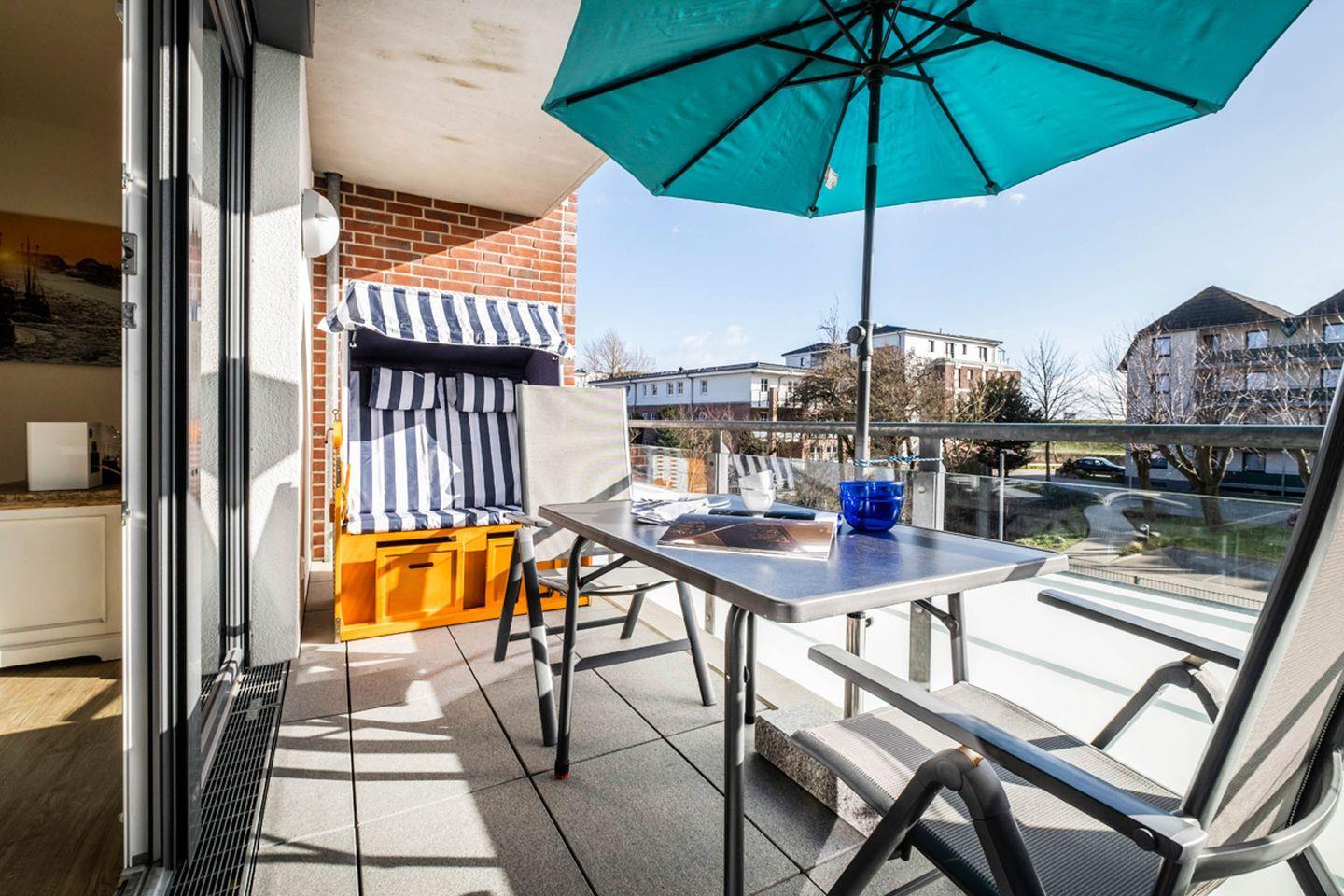 Modernes Apartment Haus Strandläufer in Büsum mit Balkon, Sauna und Strandnähe für erholsame Nordseeferien.
