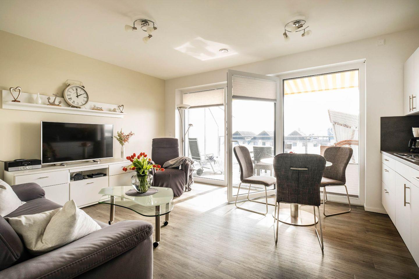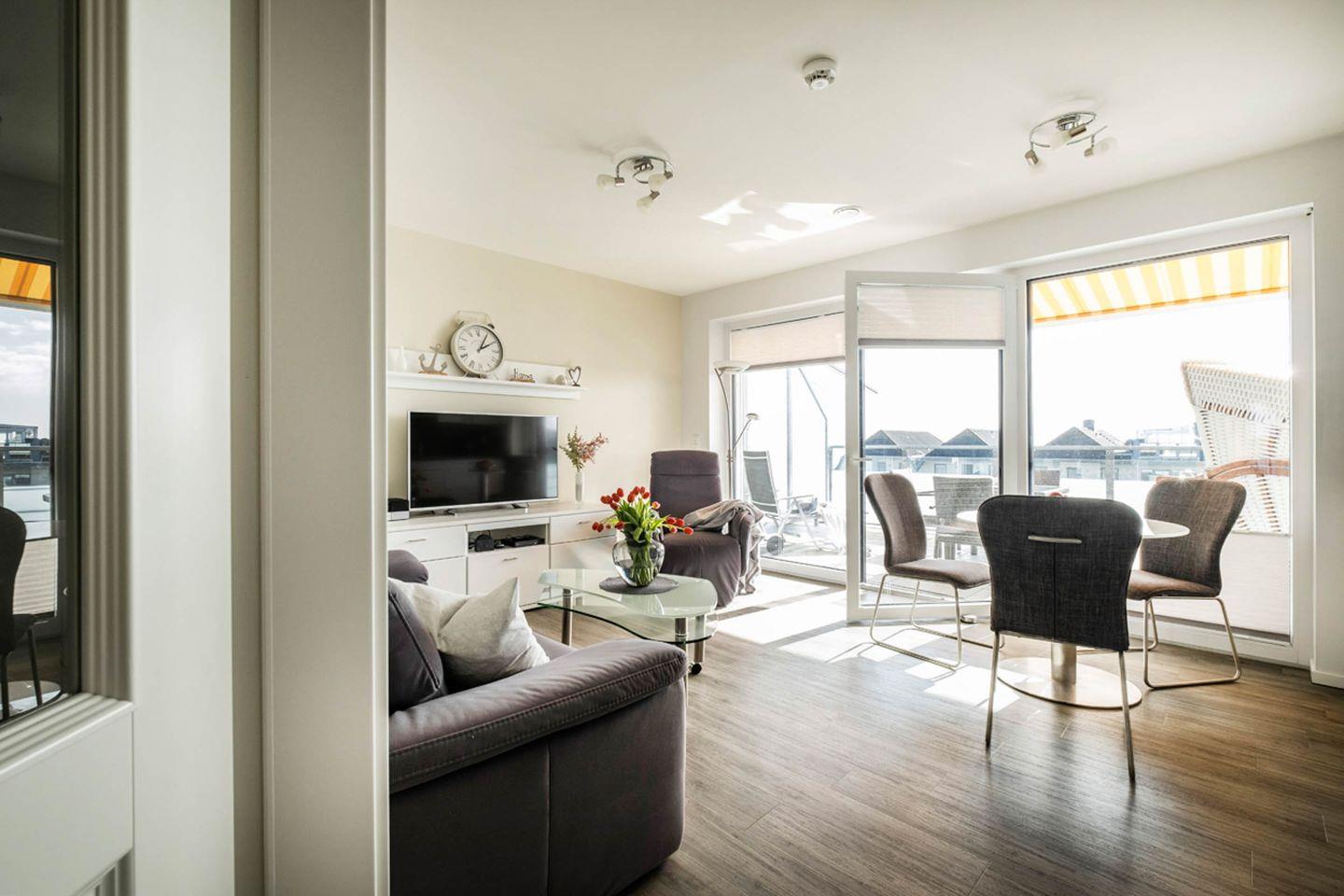 Modernes Penthouse-Apartment in Büsum mit Dachterrasse und Meerblick, nur 250 m vom Strand entfernt.