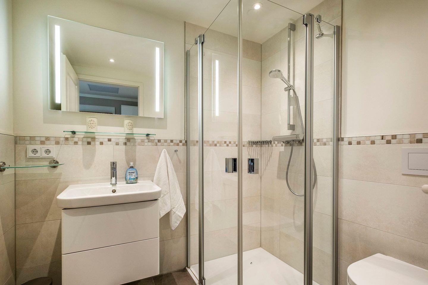 Sanitär: 2 komplette Duschbäder, je mit Handtuchheizung, je ein Haar-Föhn & Kosmetikspiegel pro Duschbad