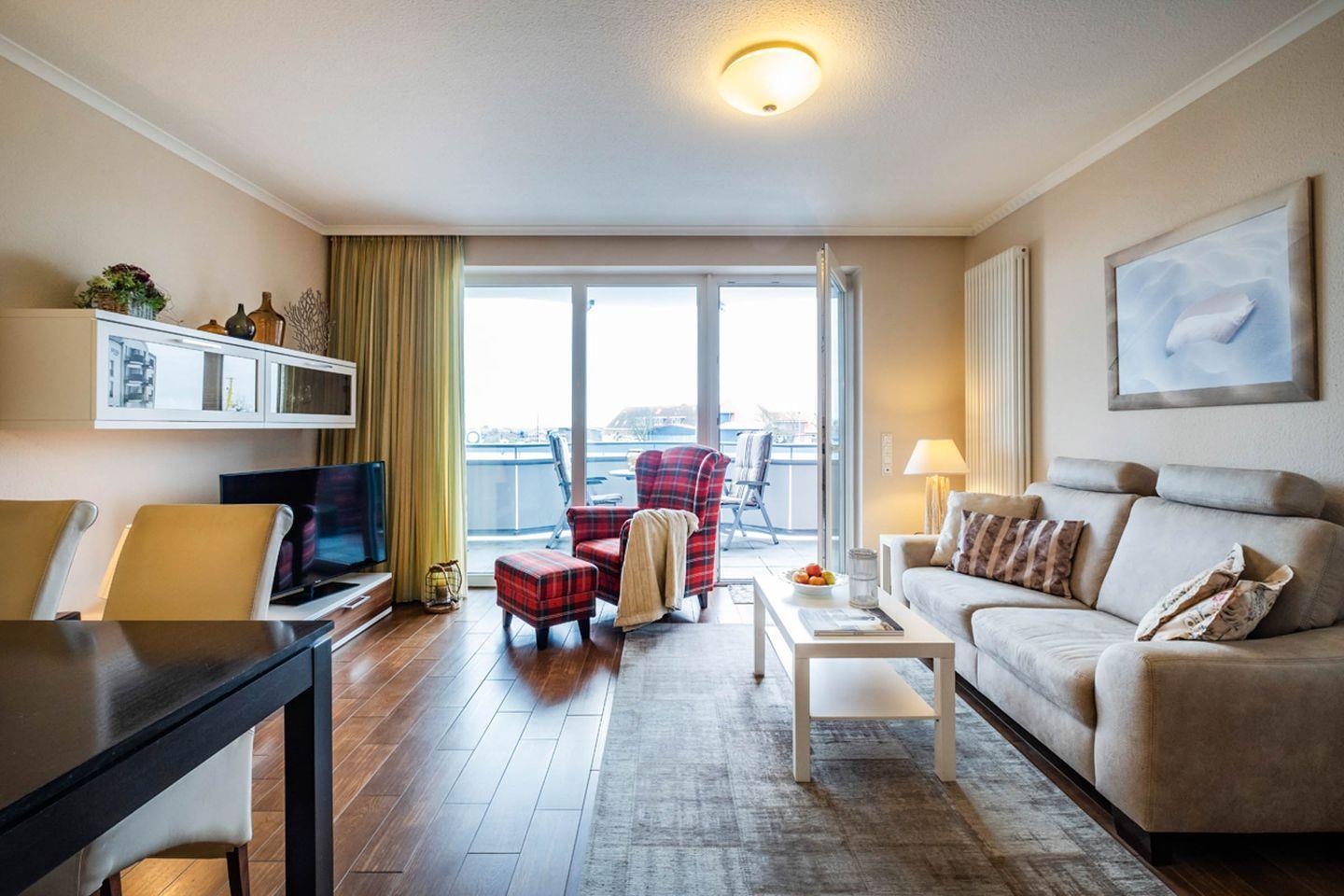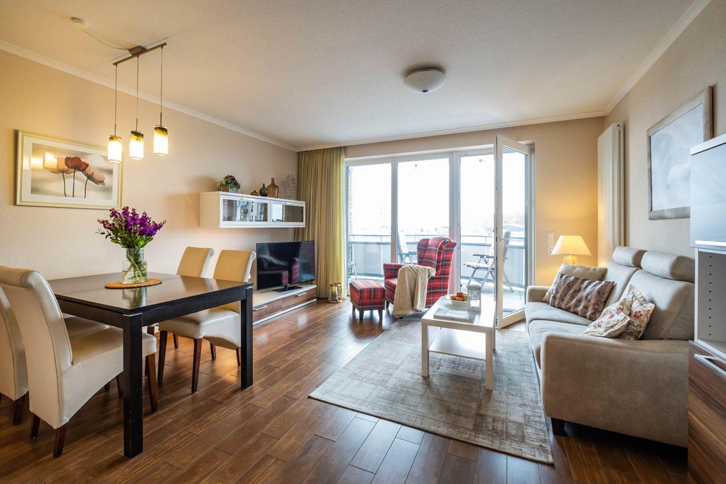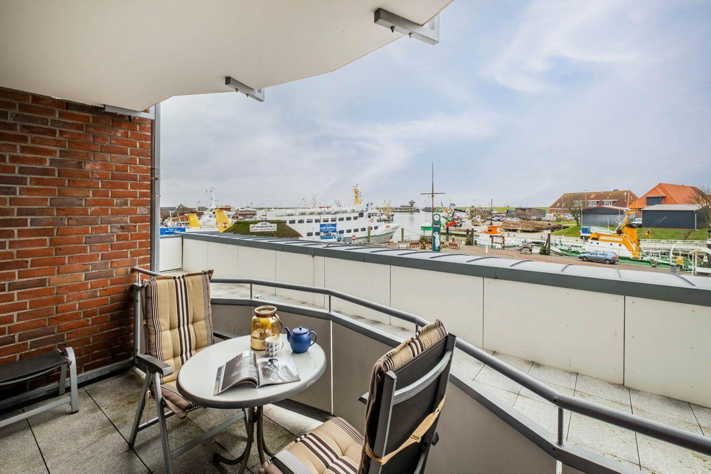 Modernes Apartment mit Balkon und Hafenblick im malerischen Büsum für erholsamen Urlaub.