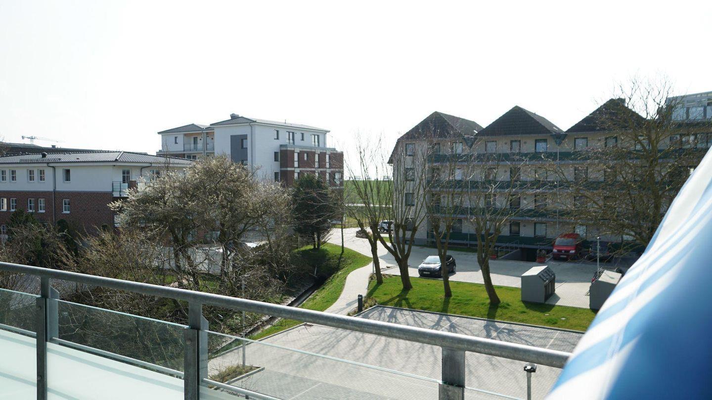 Vom Wohnraum aus und vom etwa 7 qm großen Süd-Balkon über die gesamte Wohnungsbreite hat man auch einen Blick zum Seedeich.