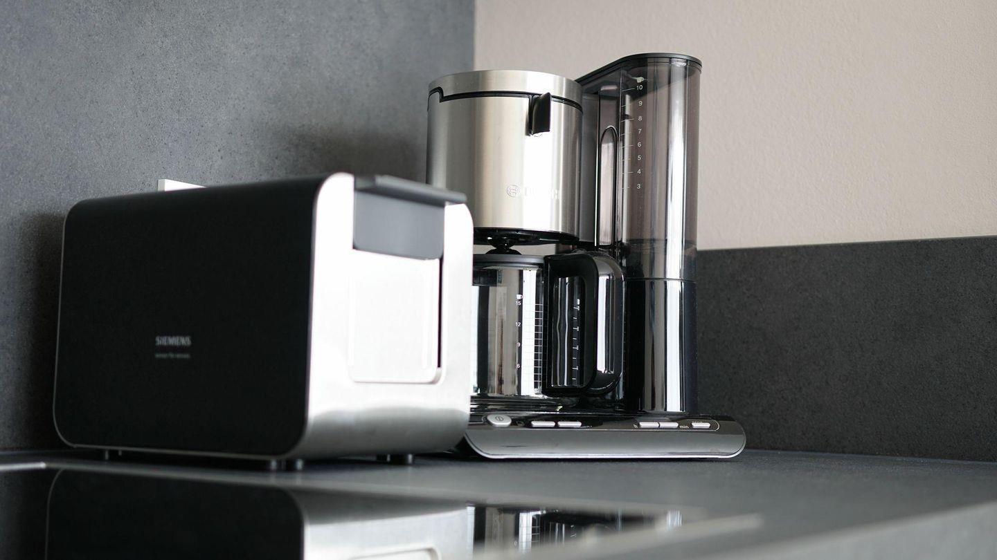 Küche: Backofen, Induktionskochfeld, Mikrowelle, Geschirrspüler, Kühl- Gefrierkombination, Kaffeemaschine, Wasserkocher, Toaster