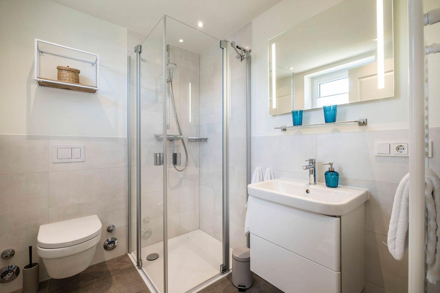 Sanitär: 2 komplette Duschbäder, je mit Handtuchheizung, je ein Haar-Föhn pro Duschbad, Kosmetikspiegel